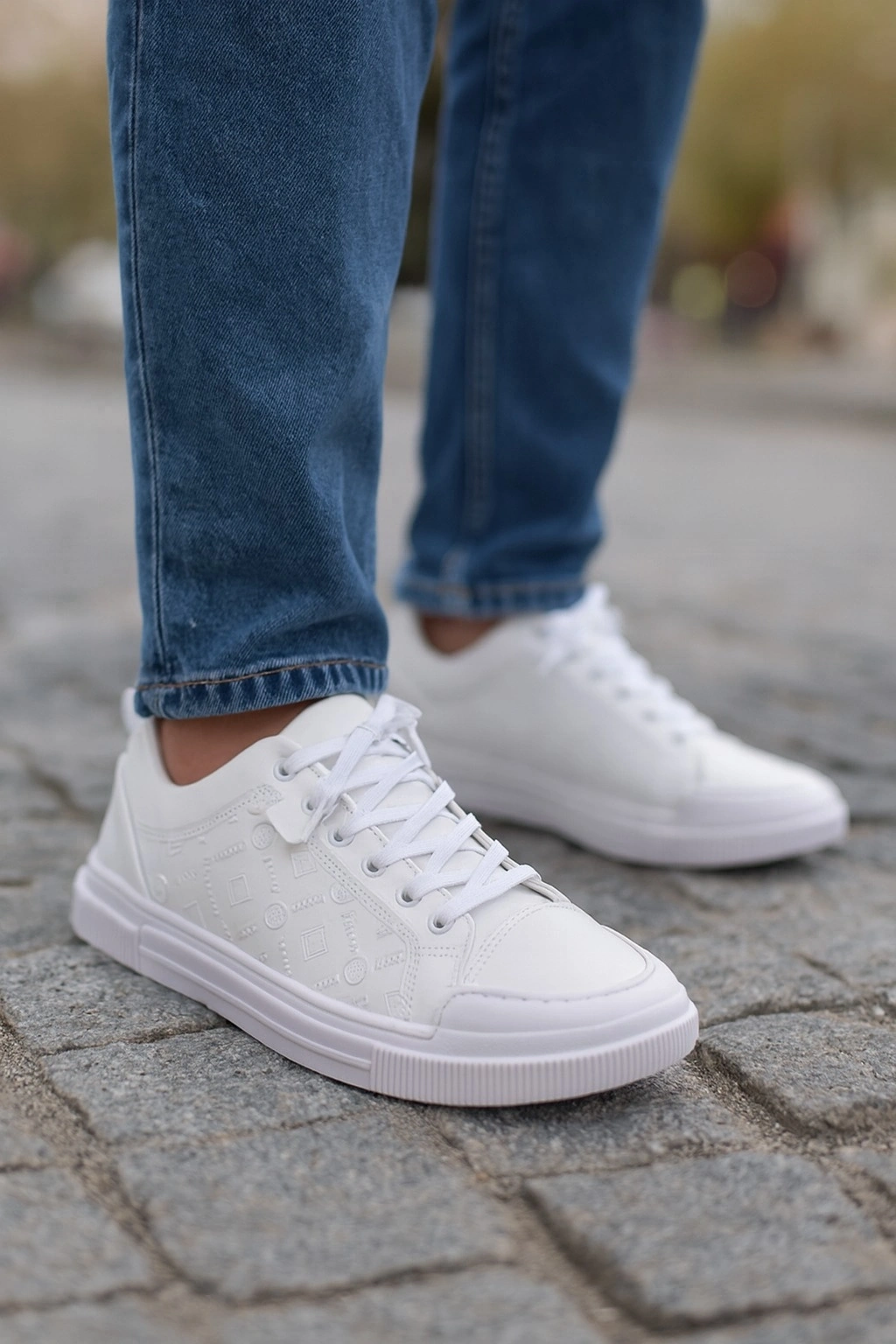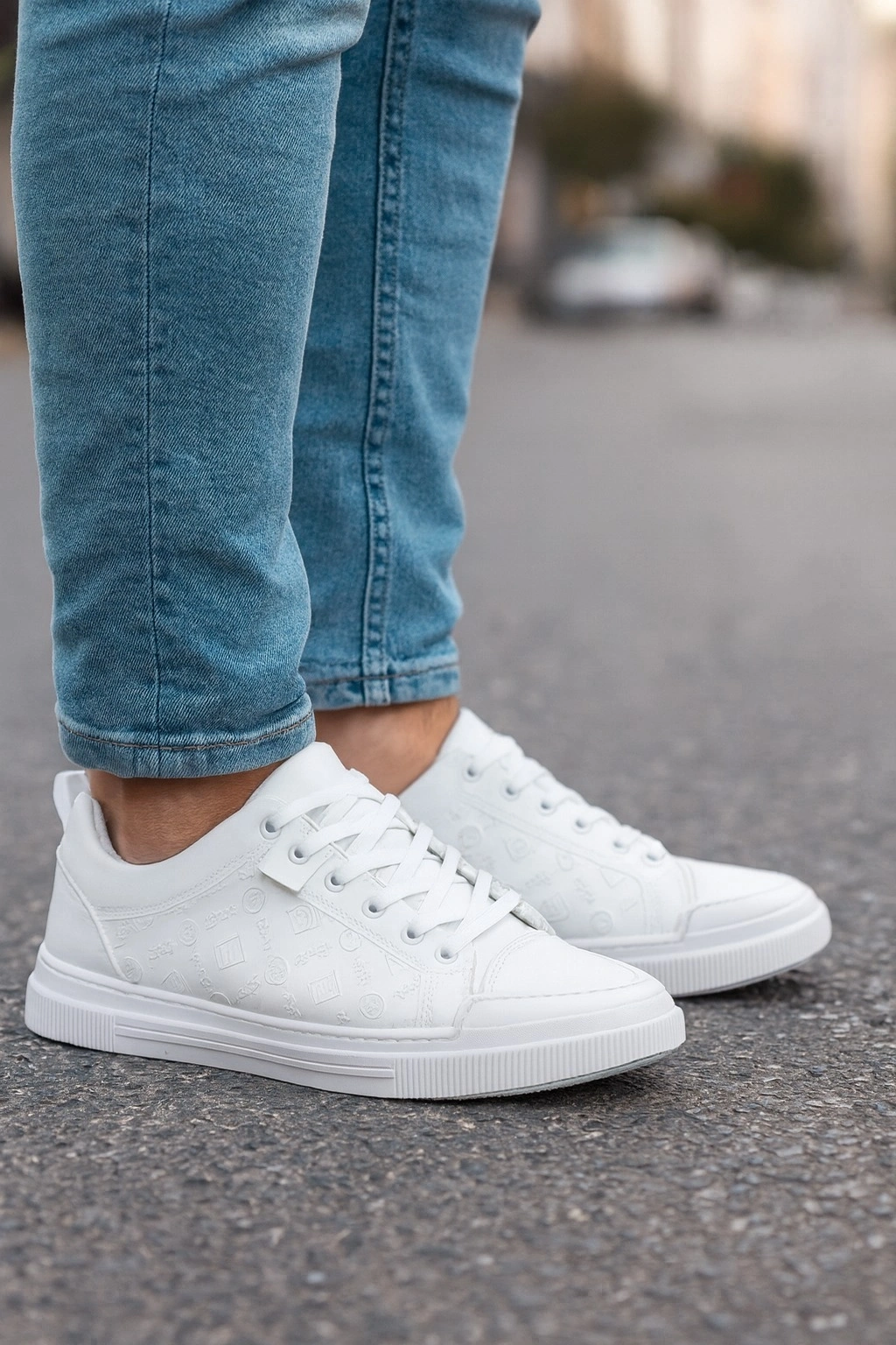 Kalın Taban Fileli Siyah Beyaz Spor Ayakkabı