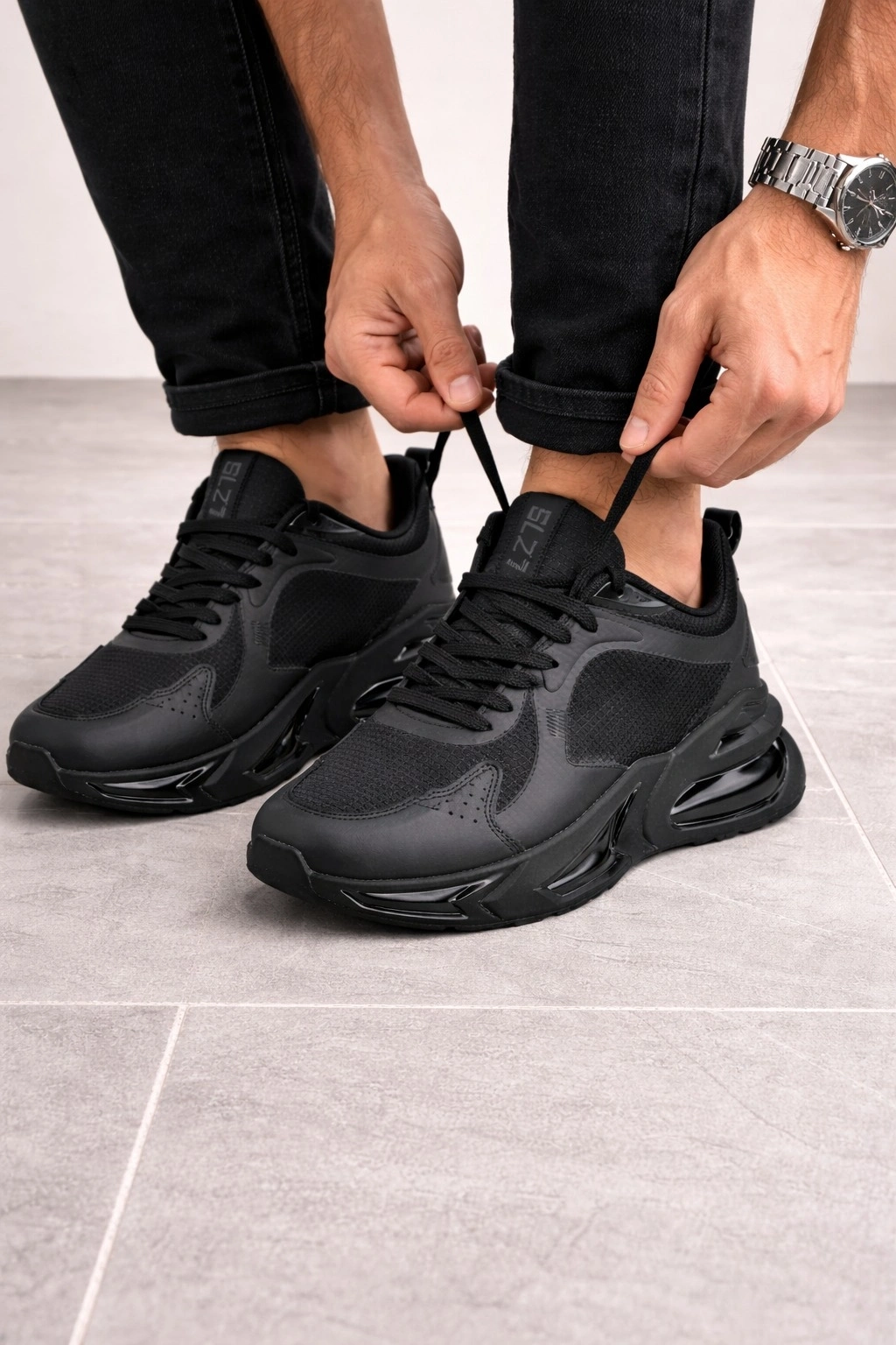 Erkek Siyah Air Taban Spor Ayakkabı Gold-Gümüş Detaylı Sneaker