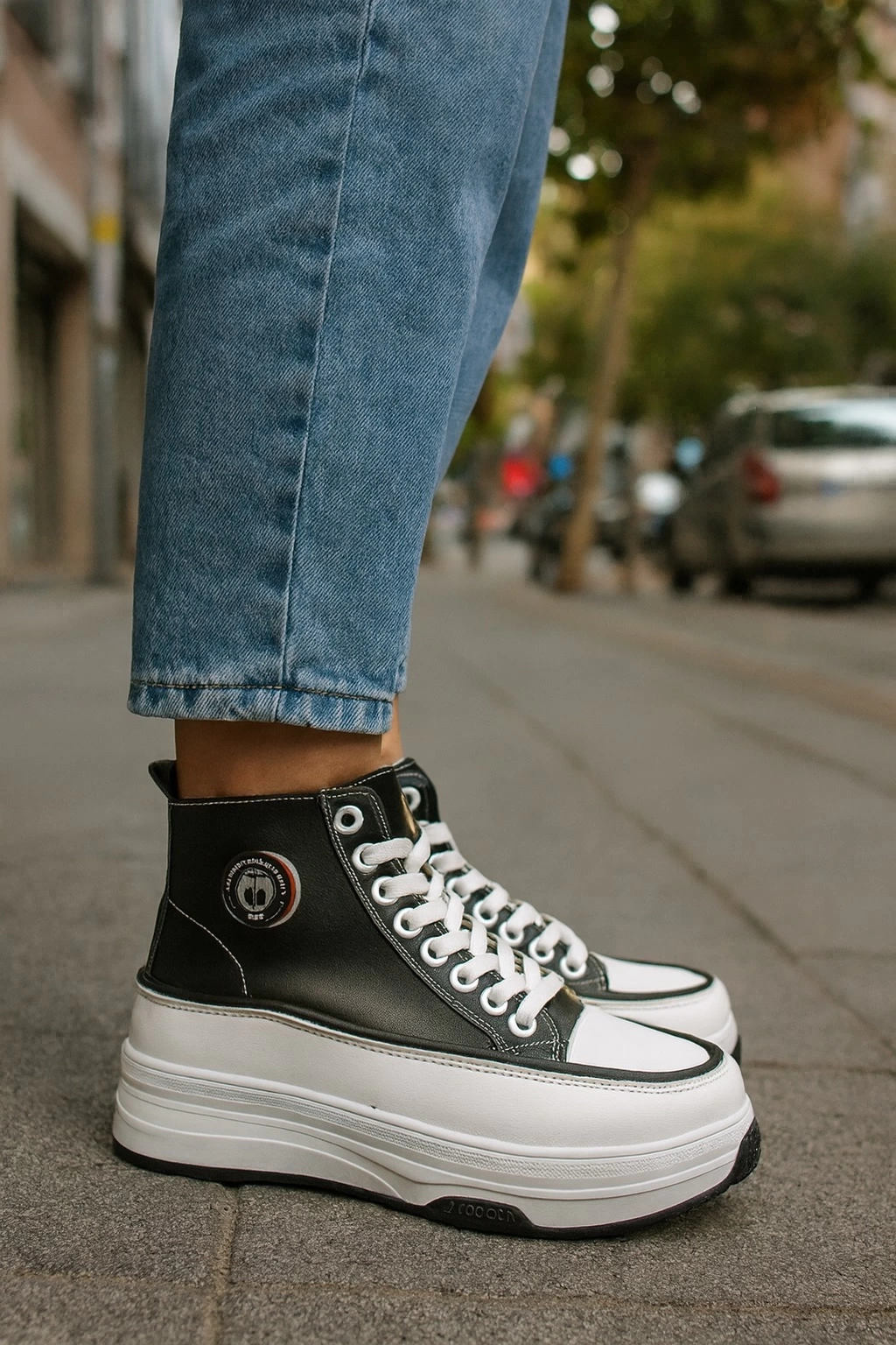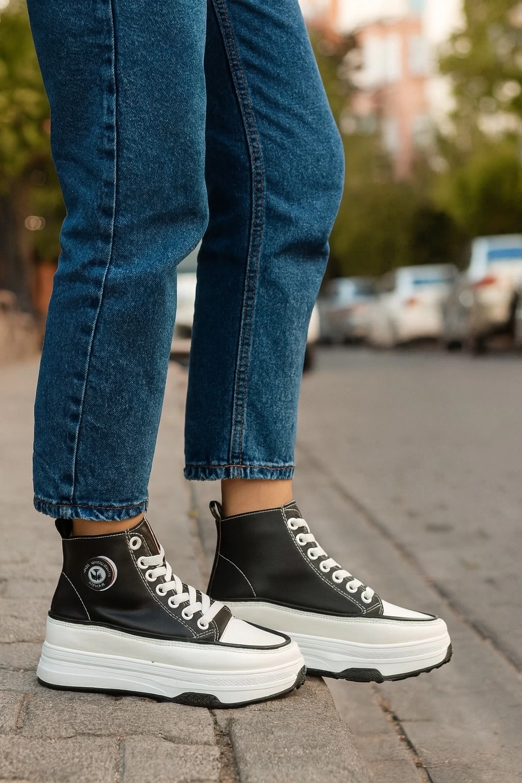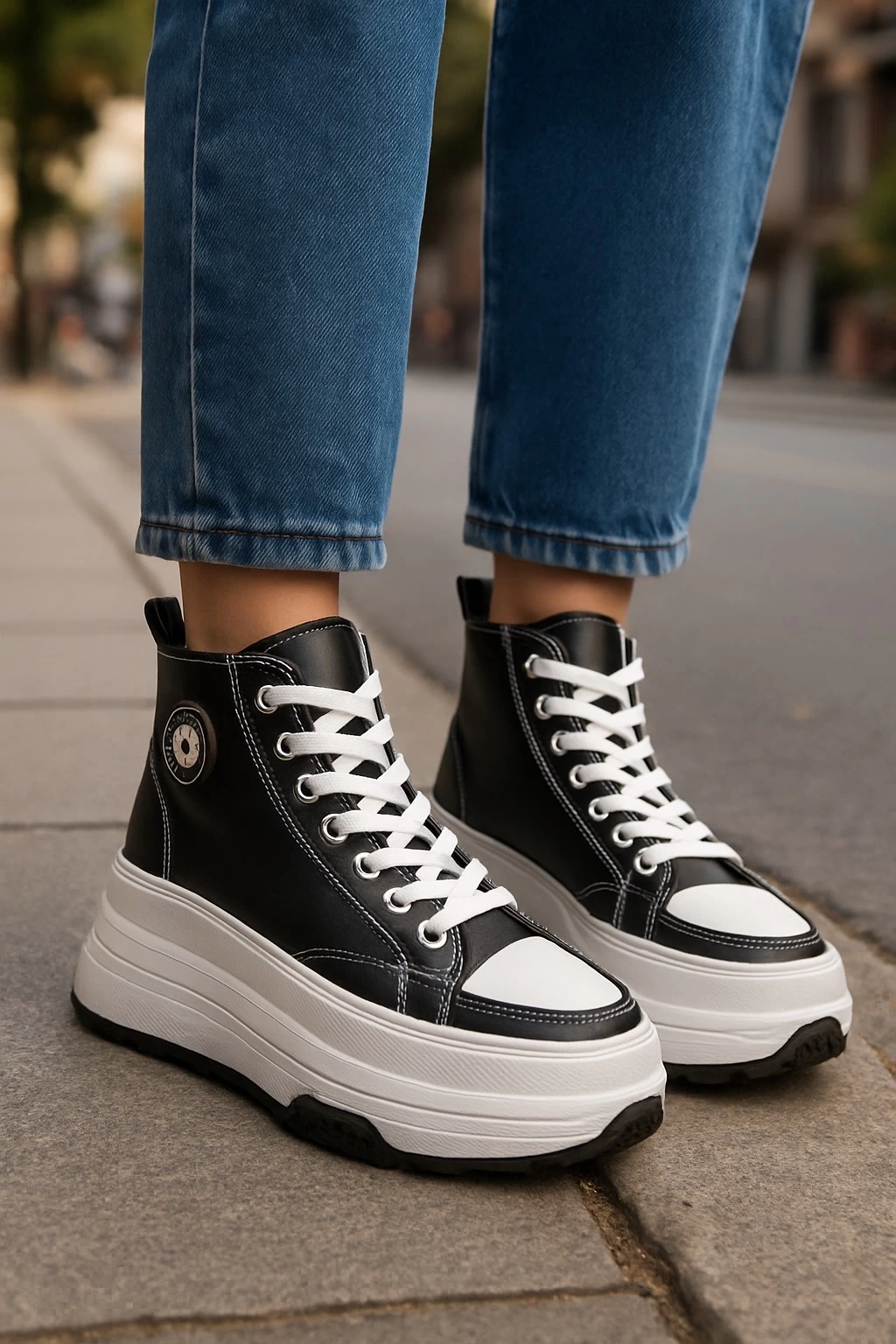 Günlük Kadın Sneaker Bağcıklı Detaylı Yüksek Taban Rahat Ayakkabı