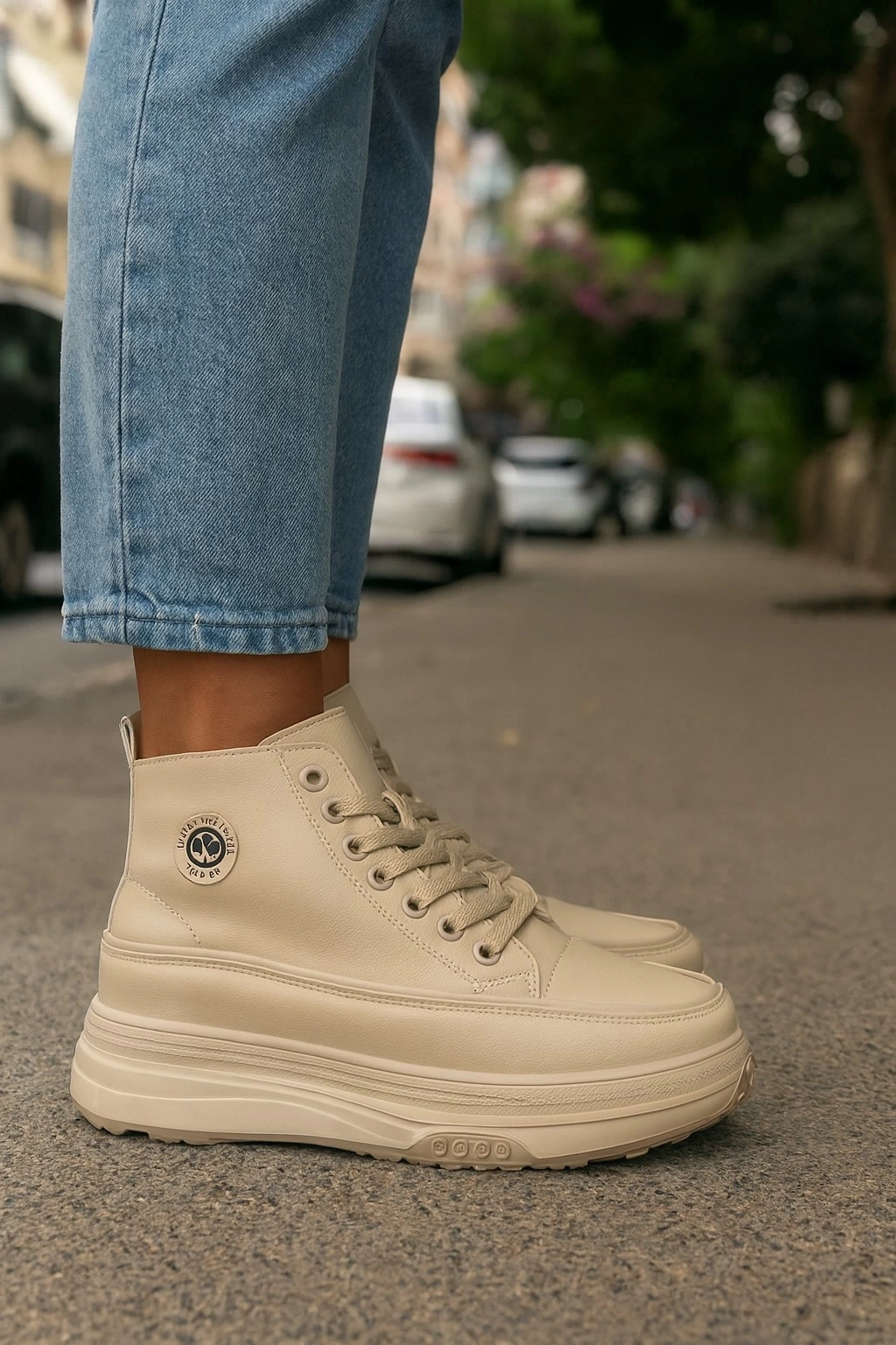 Günlük Kadın Sneaker Bağcıklı Detaylı Yüksek Taban Rahat Ayakkabı