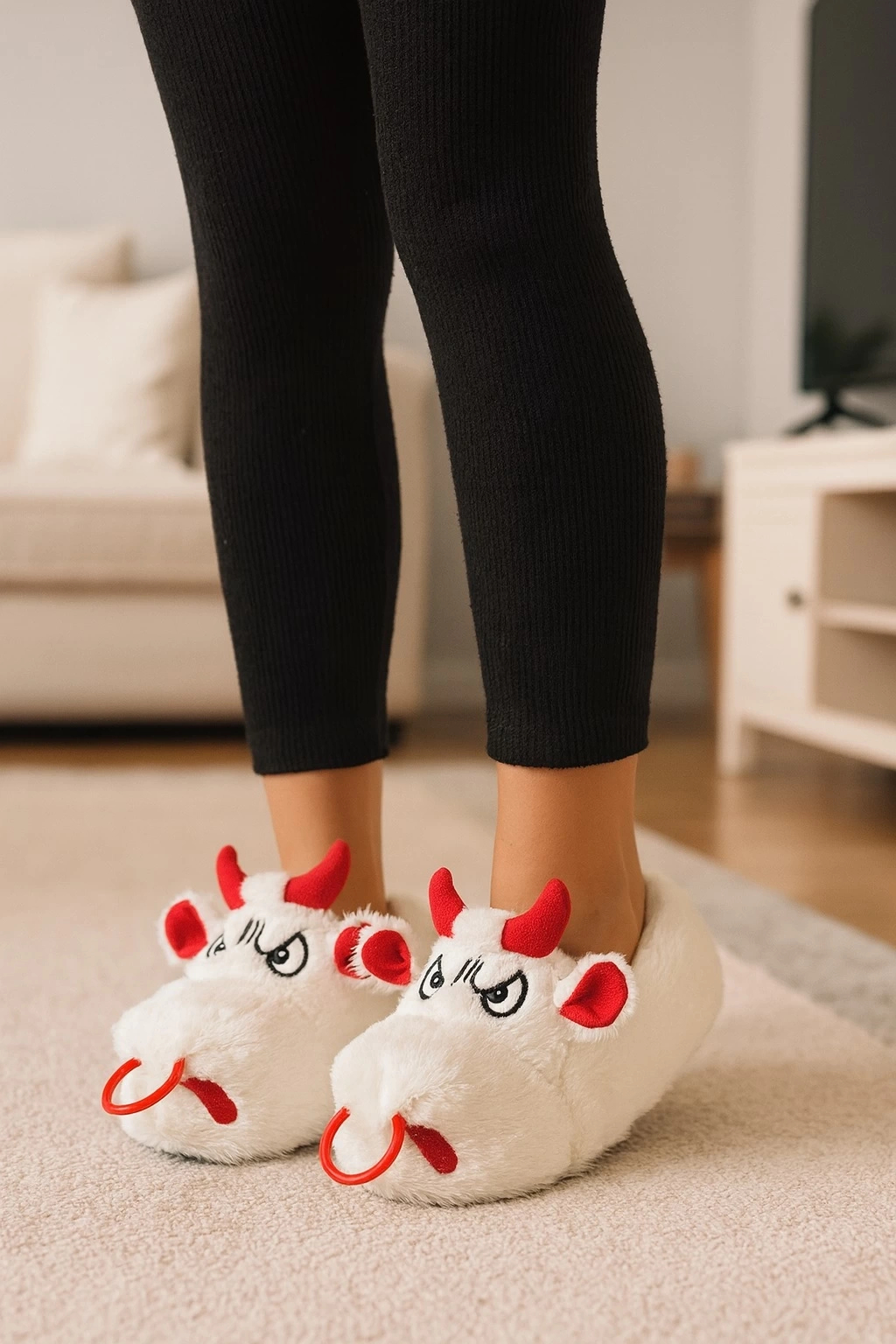 Kadın Hayvanlı Kışlık Peluş Tavşan Panduf Ev Terliği
