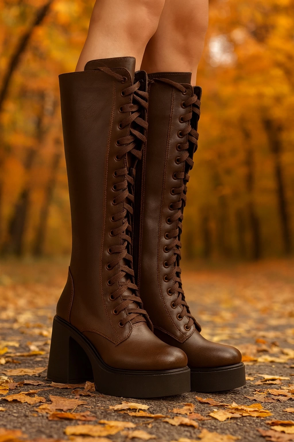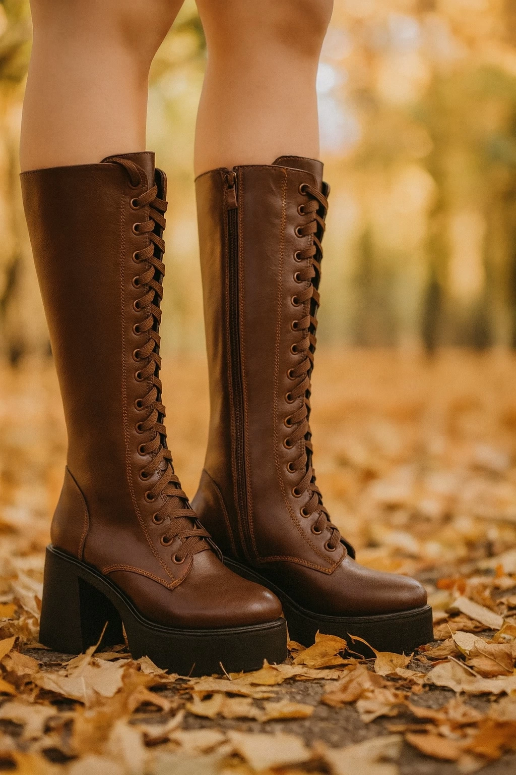 Kadın Bağcıklı Platform Topuklu Uzun Çizme