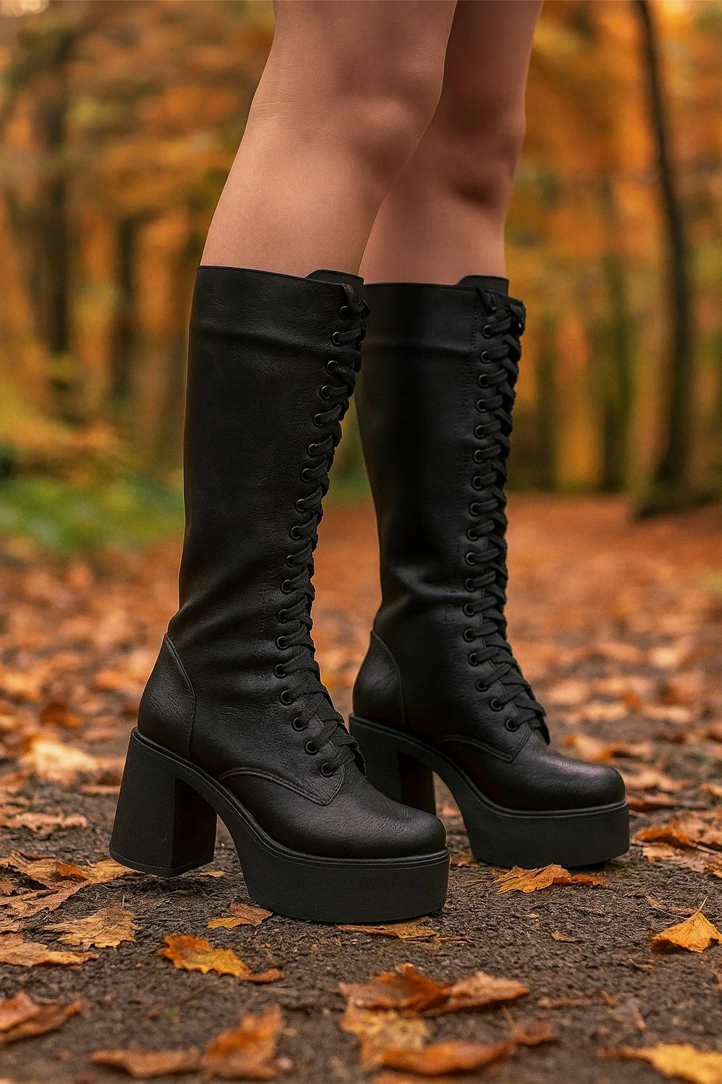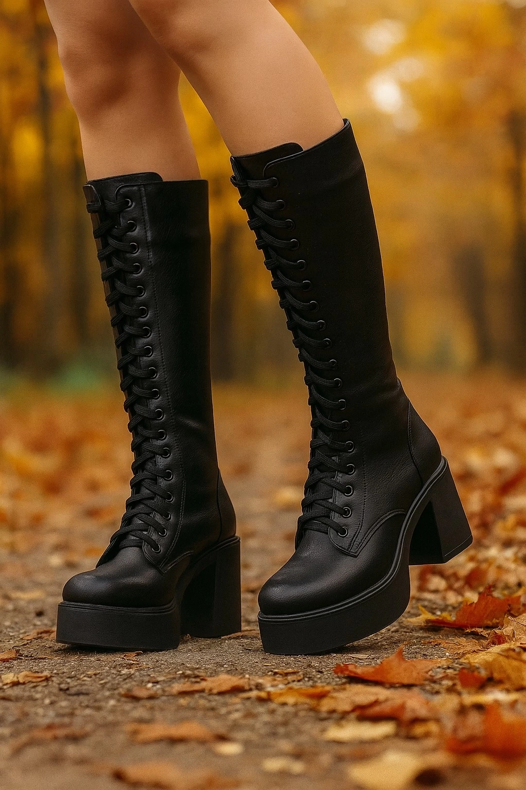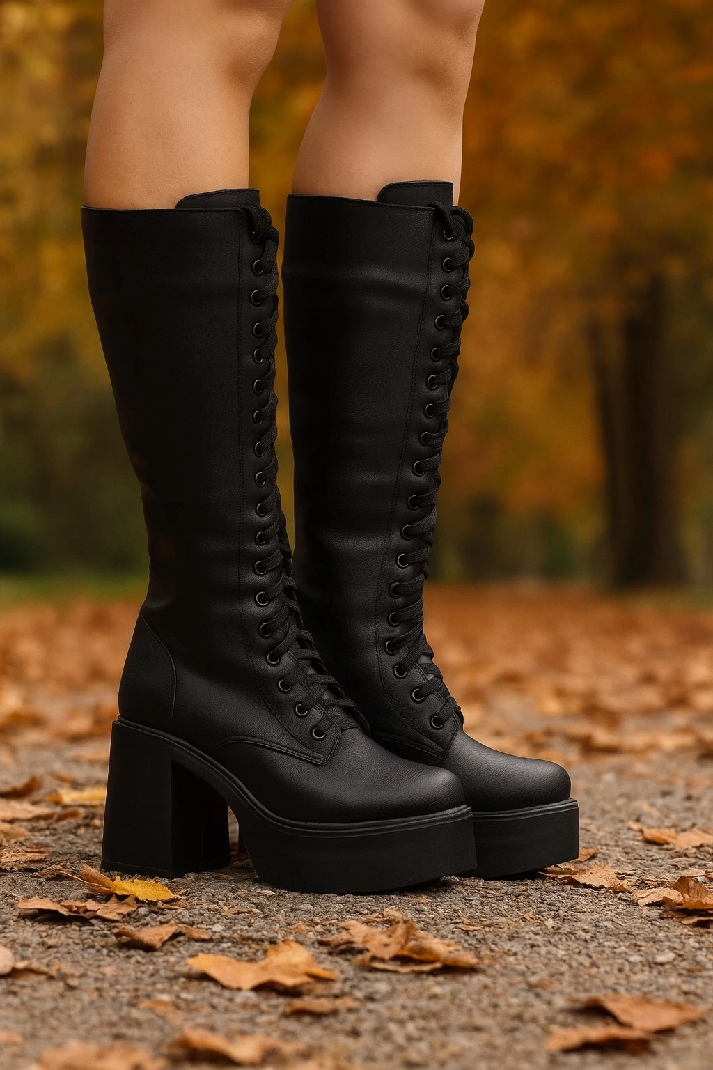 Kadın Bağcıklı Platform Topuklu Uzun Çizme