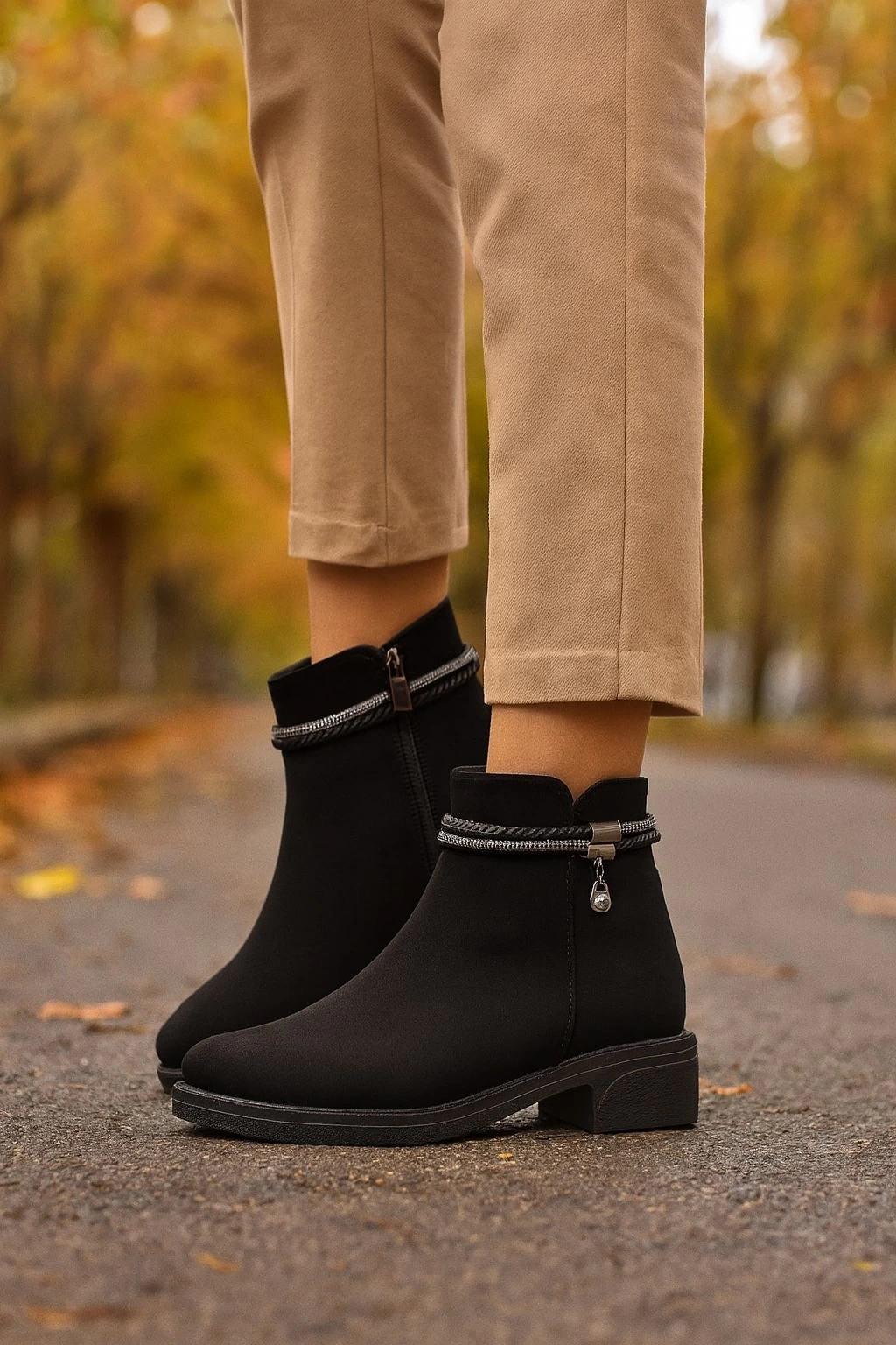 Kadın Cilt ve Nubuk Aksesuar Detaylı Fermuarlı Rahat Kışlık Bot Kaymaz Taban