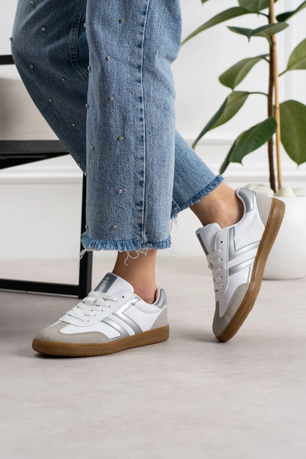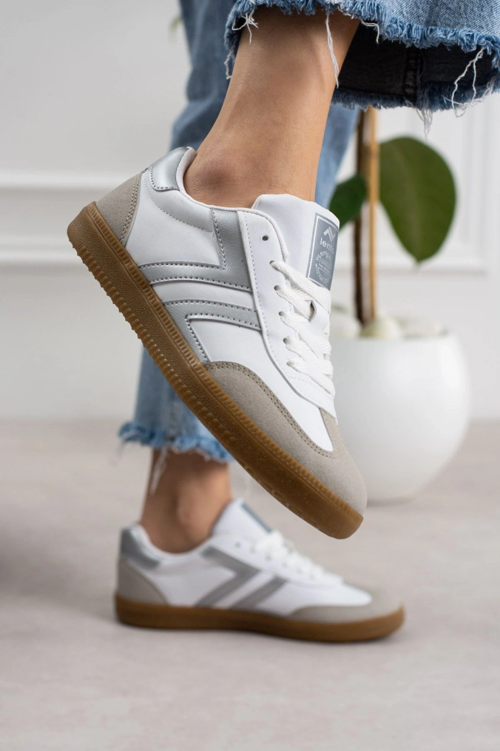Şerit detaylı retro tasarımı ve günlük kullanıma uygun yapısıyla öne çıkan bu kadın sneaker, konforu ve şıklığı bir arada sunar.