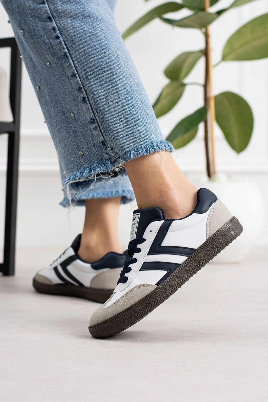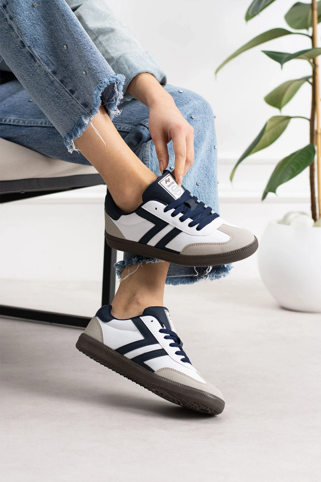 Şerit detaylı retro tasarımı ve günlük kullanıma uygun yapısıyla öne çıkan bu kadın sneaker, konforu ve şıklığı bir arada sunar.