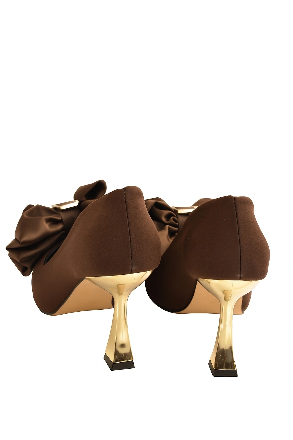 Kadın Gold Topuk Saten Fiyonk Detaylı Topuklu Ayakkabı