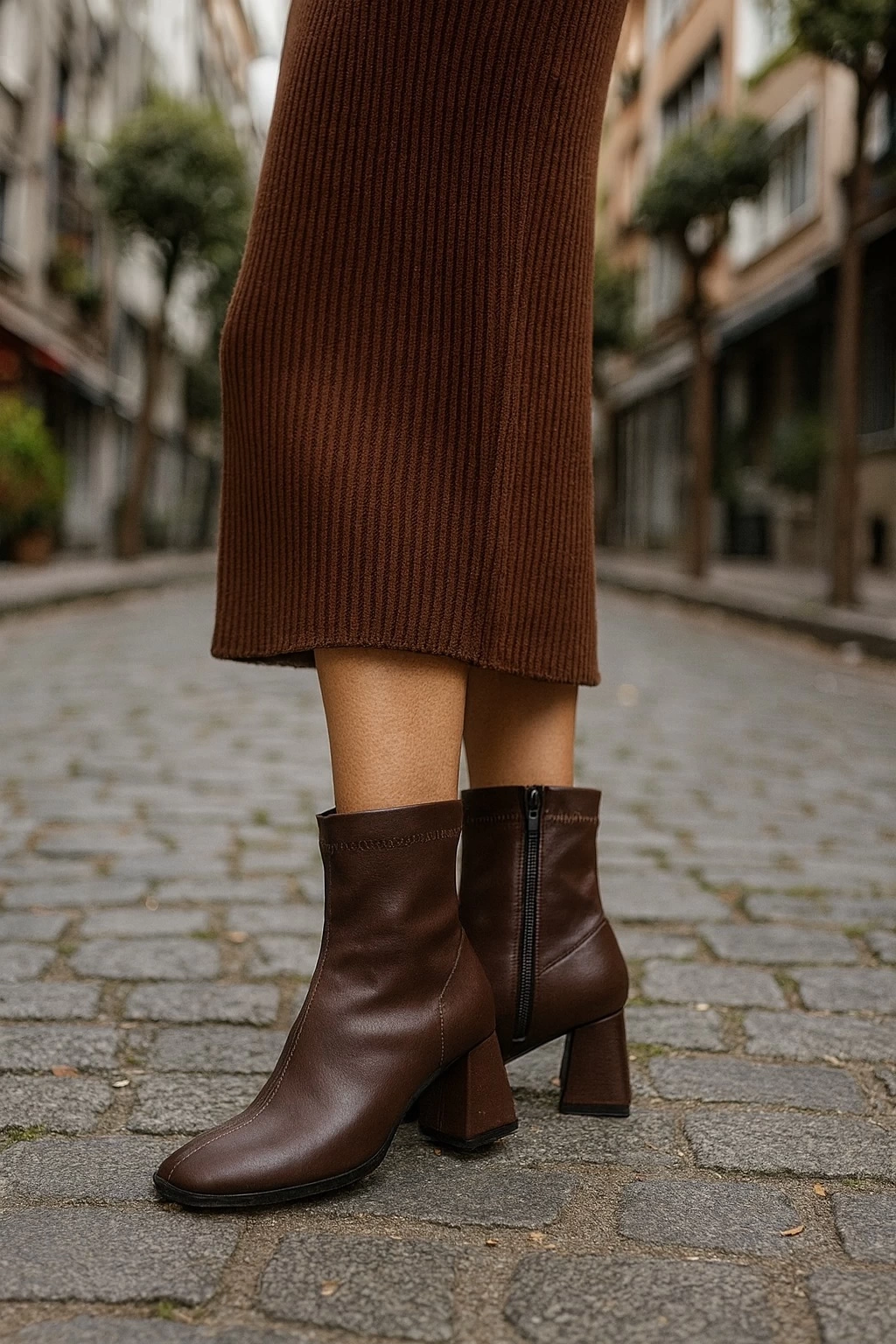 Kalın Topuklu Cilt/Süet Kadın Bot & Bootie