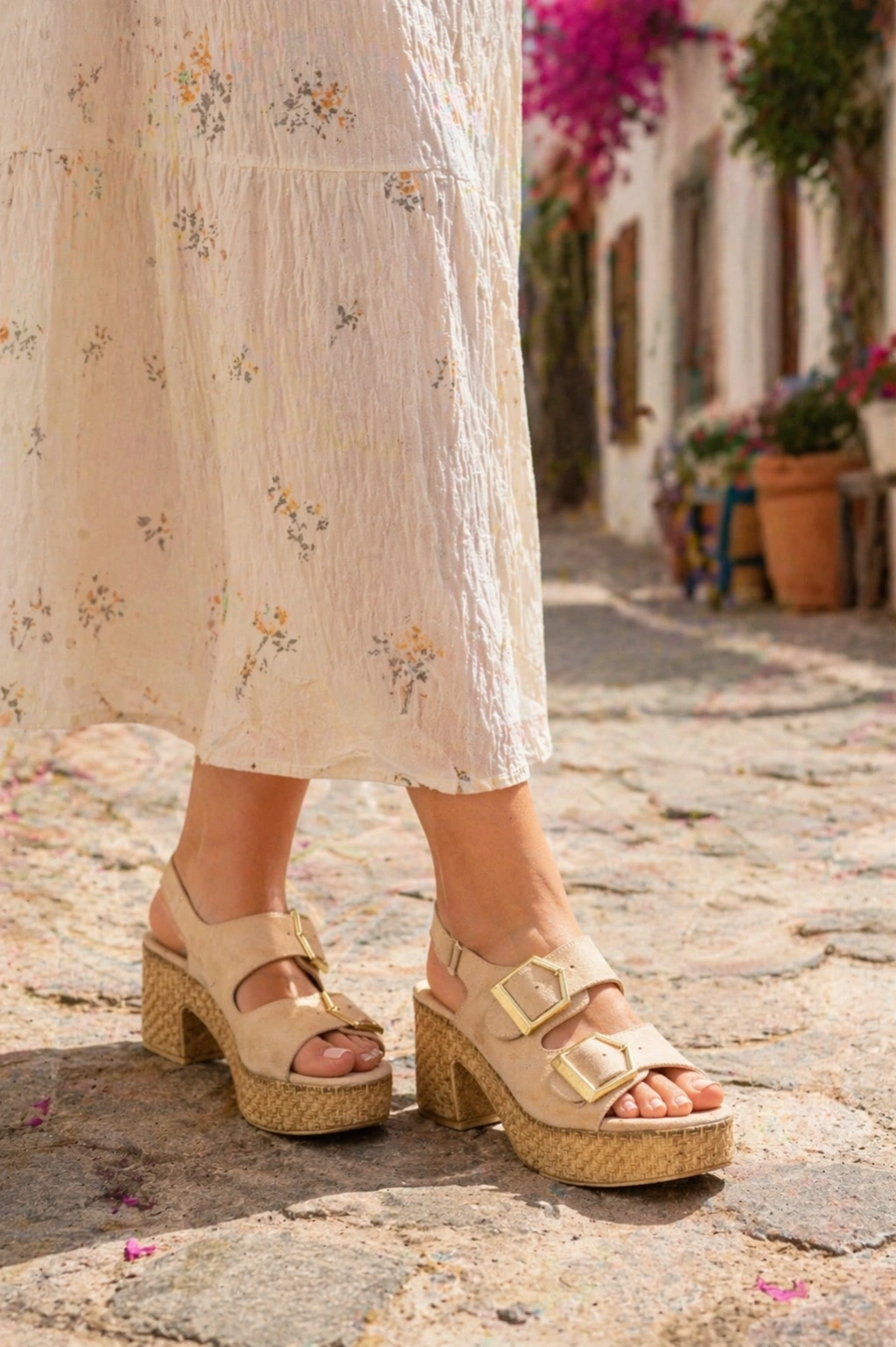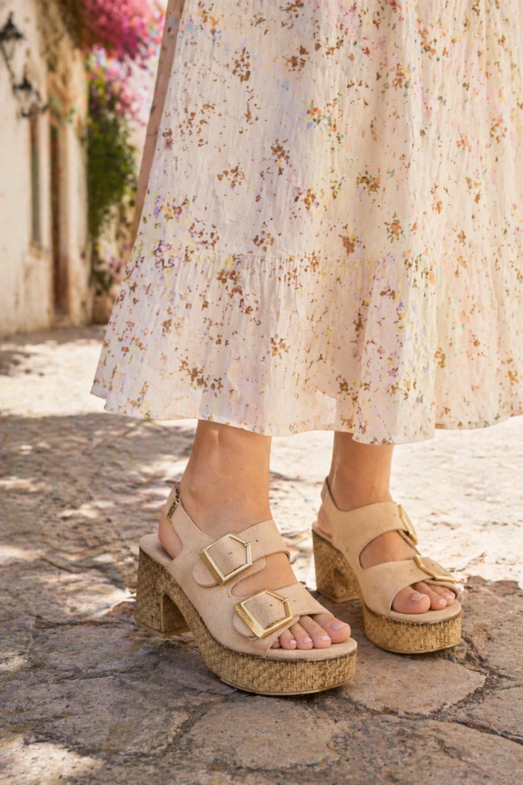 Kadın Nubuk Çift Tokalı Kalın Topuk Sandalet – 8 cm Güçlü ve şık duruşu bir araya getiren bu kadın sandalet, 8 cm kalın topuk yapısıyla hem zarif bir görünüm hem de dengeli bir yürüyüş sunar.