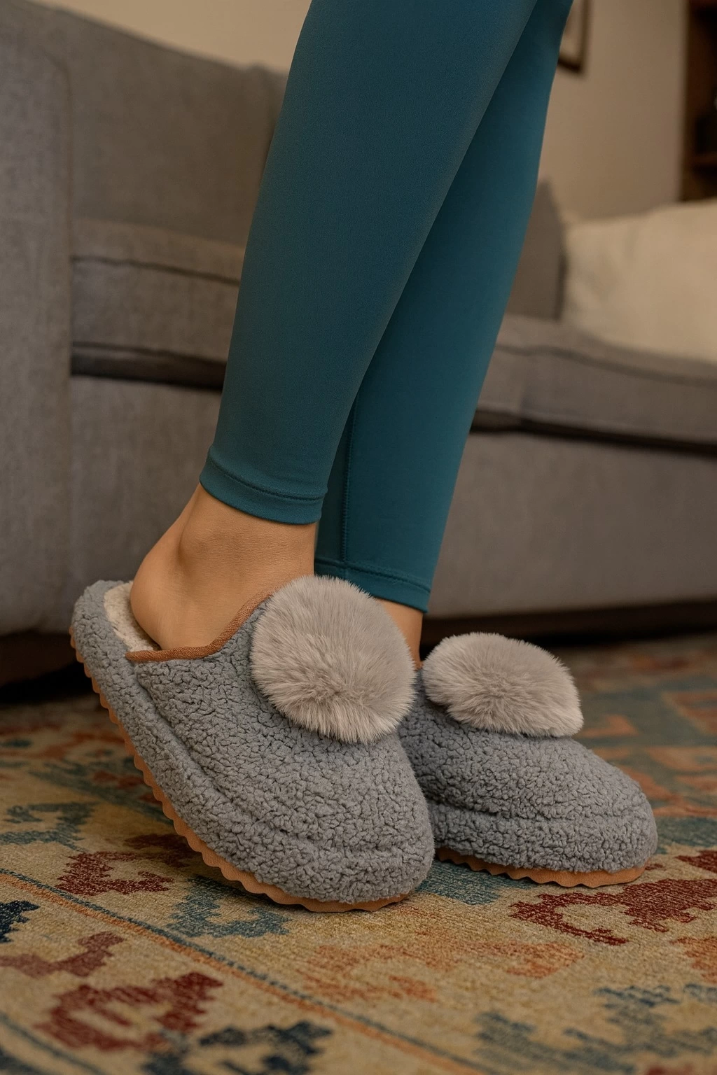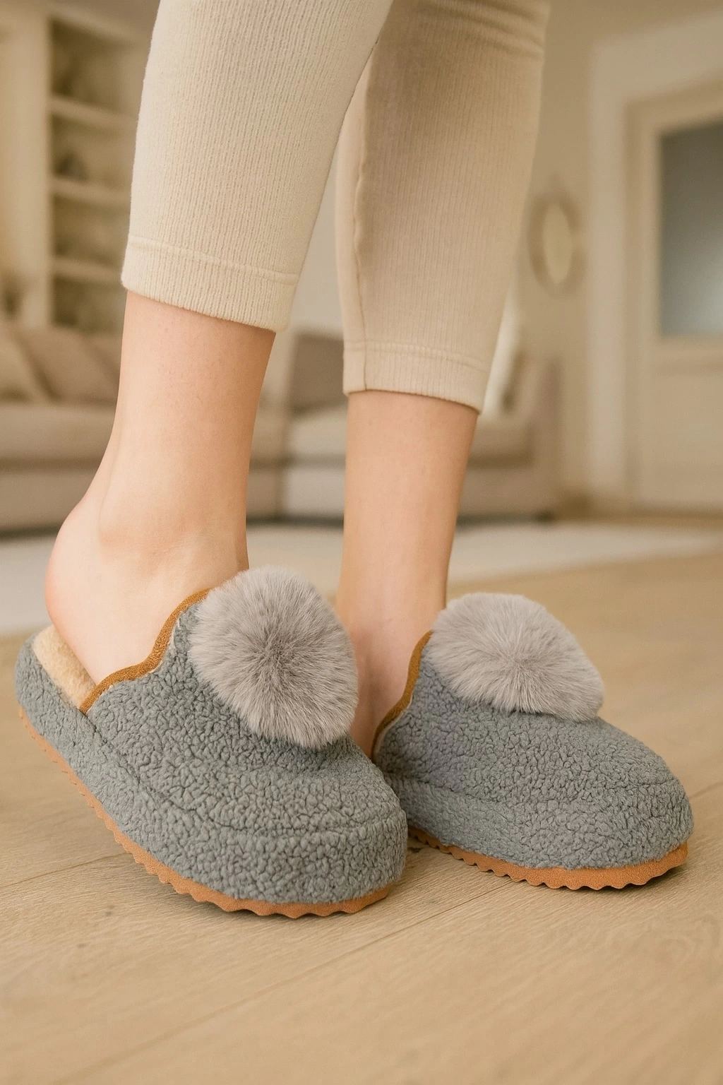 Ponpon detaylı kışlık ev terliğiMalzeme:Yumuşak, peluş görünümlü