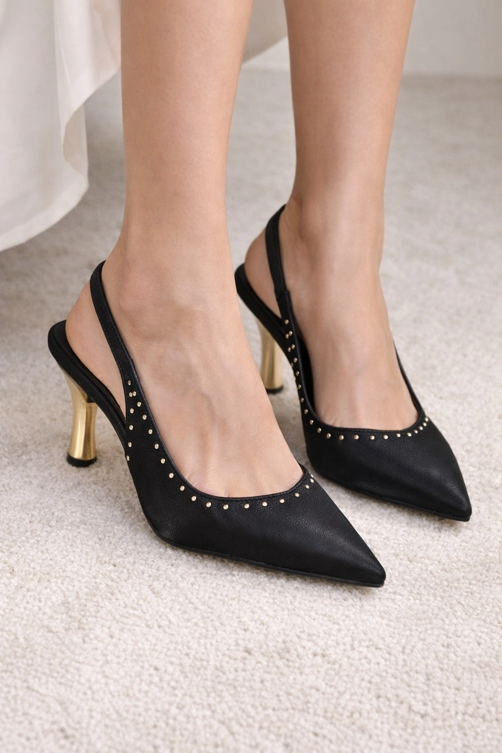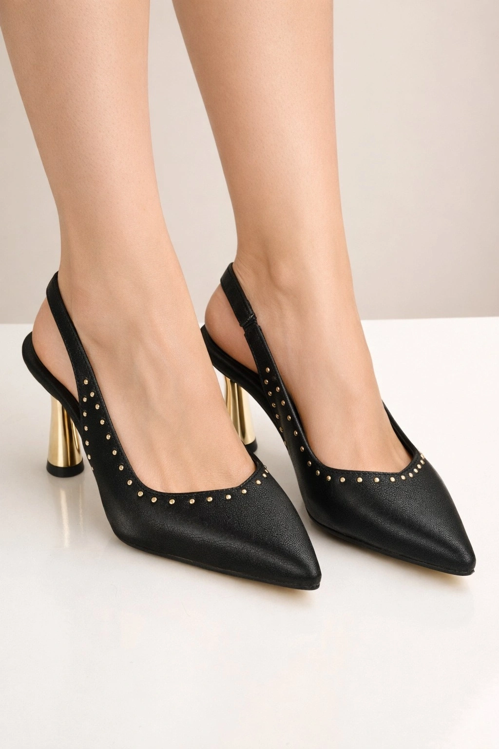 Kadın Sivri Burun Zımbalı Slingback İnce Topuk Ayakkabı