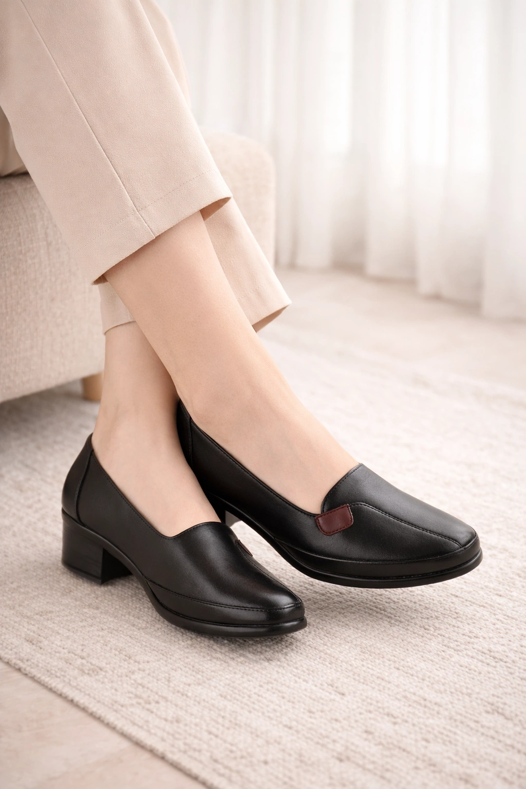 Kadın Siyah Düz Giy-Çık Kısa Topuk Ayakkabı