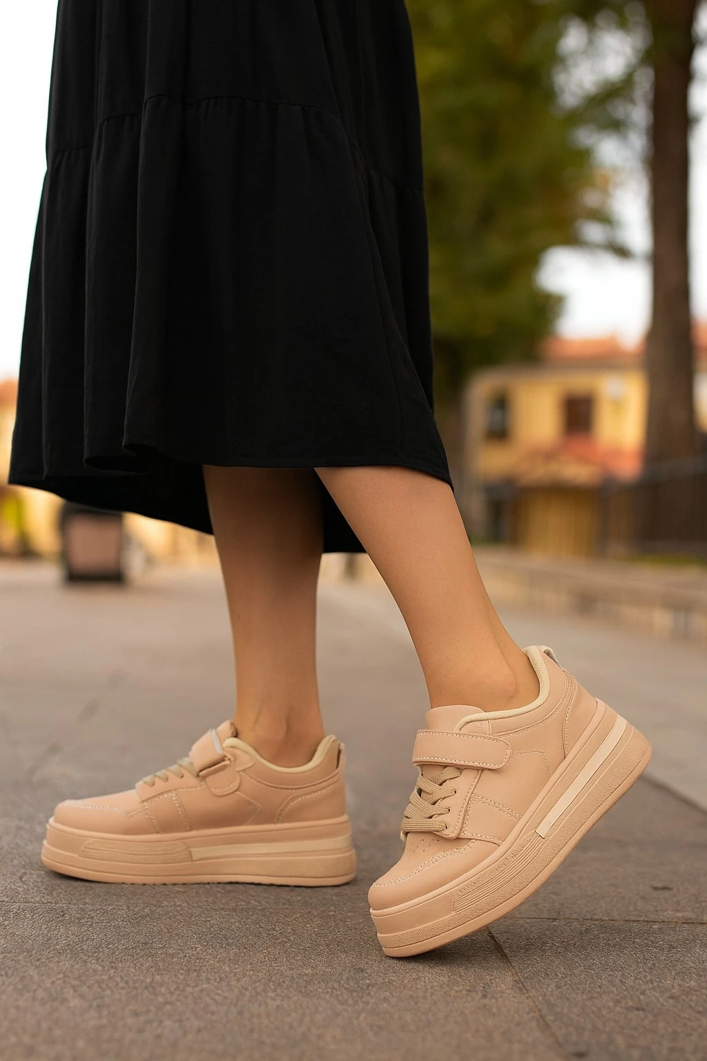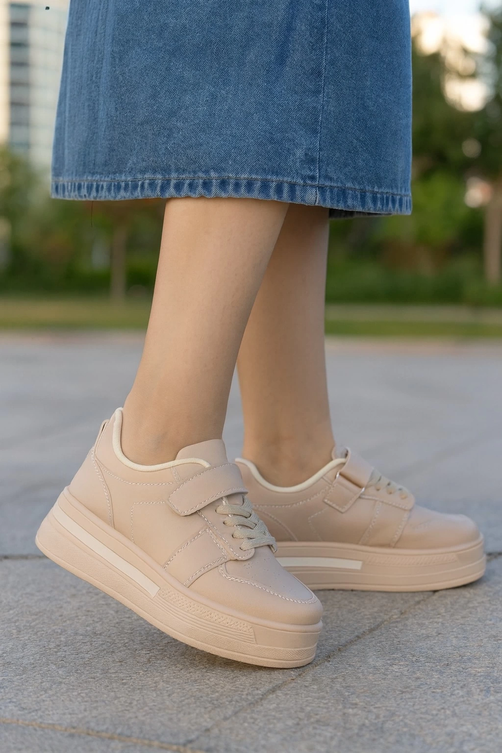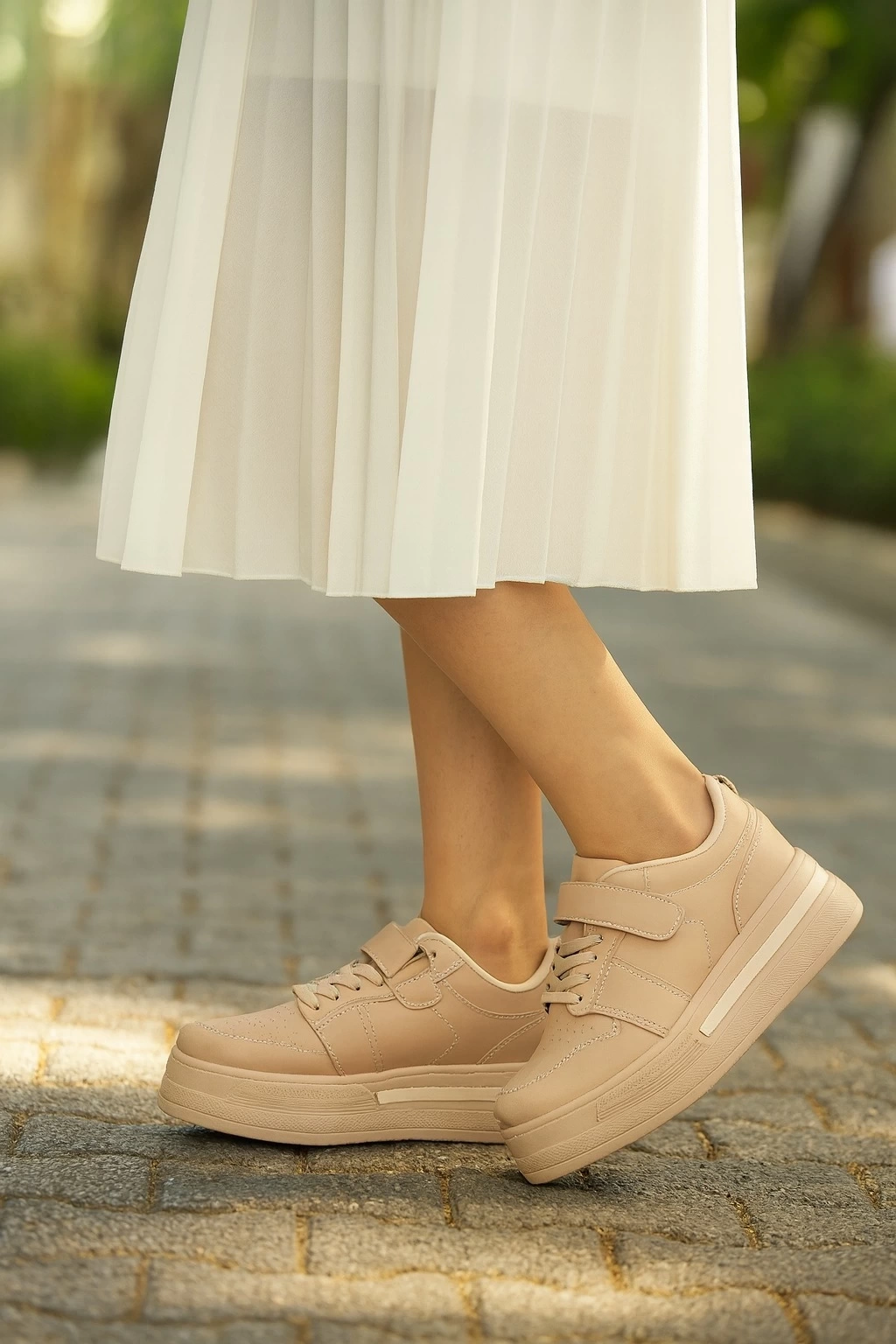 Günlük Kadın Sneaker Bağcıklı Detaylı Yüksek Taban Rahat Ayakkabı