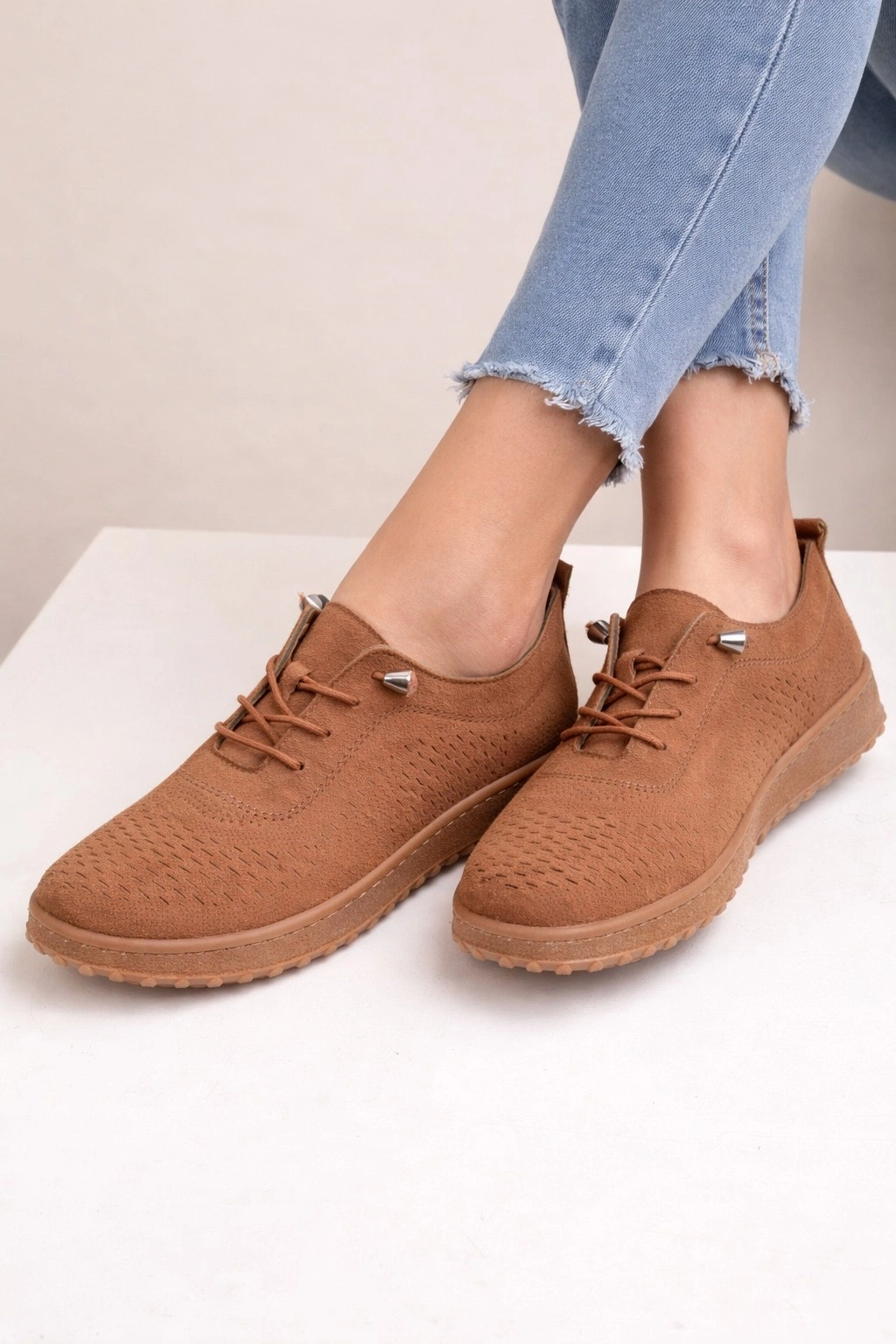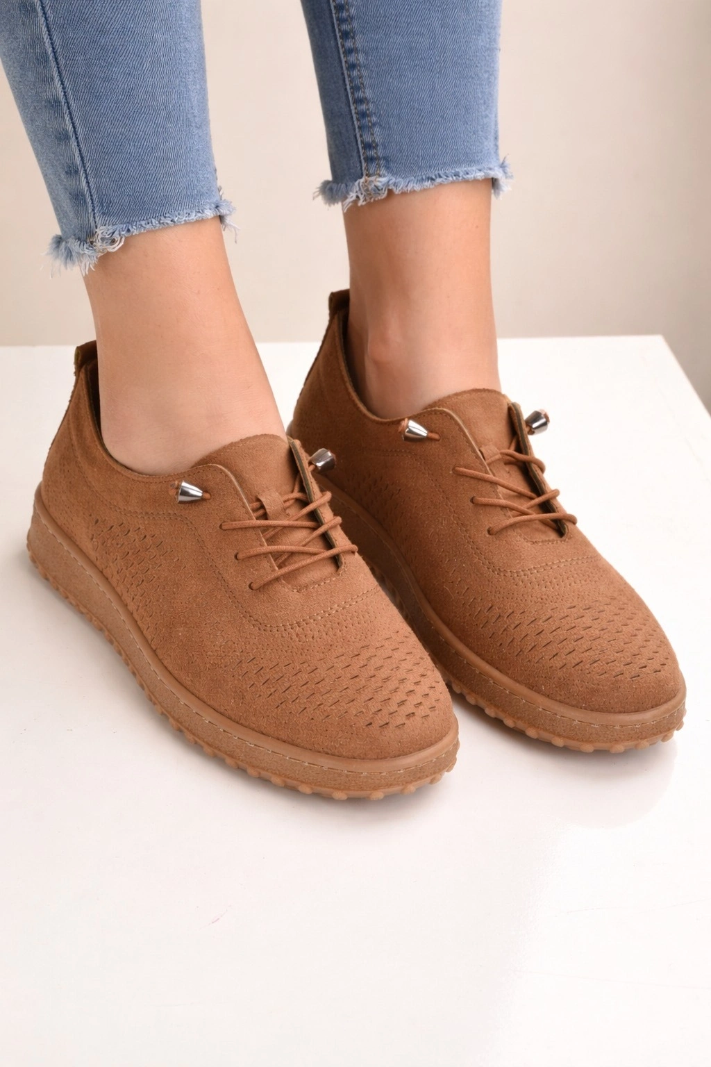 Kadın Süet Görünümlü Rahat Günlük Ayakkabı Bağcıklı
