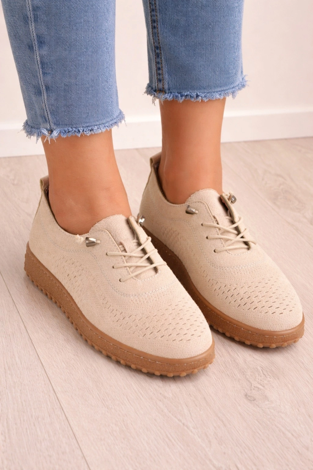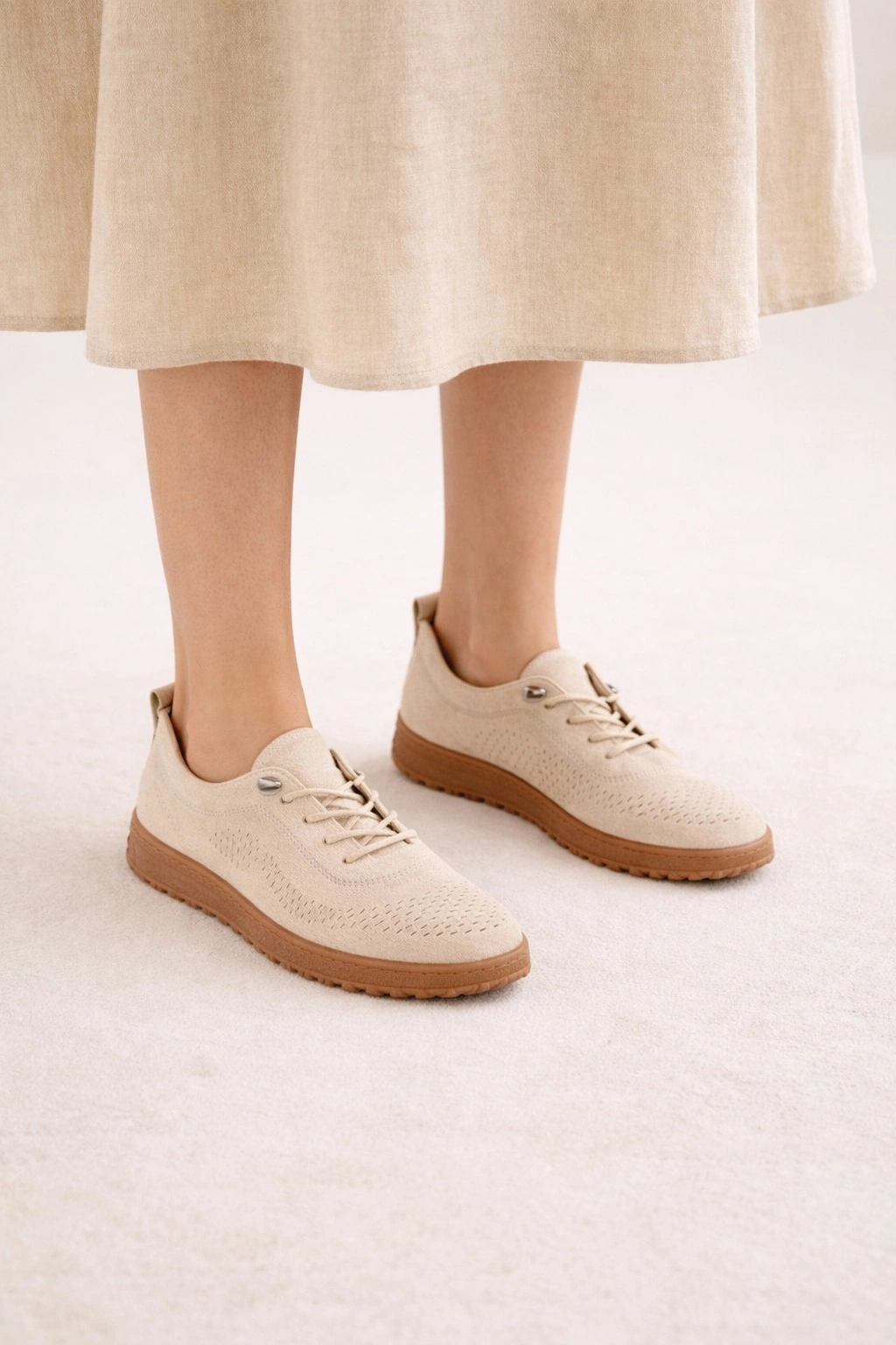 Kadın Süet Görünümlü Rahat Günlük Ayakkabı Bağcıklı