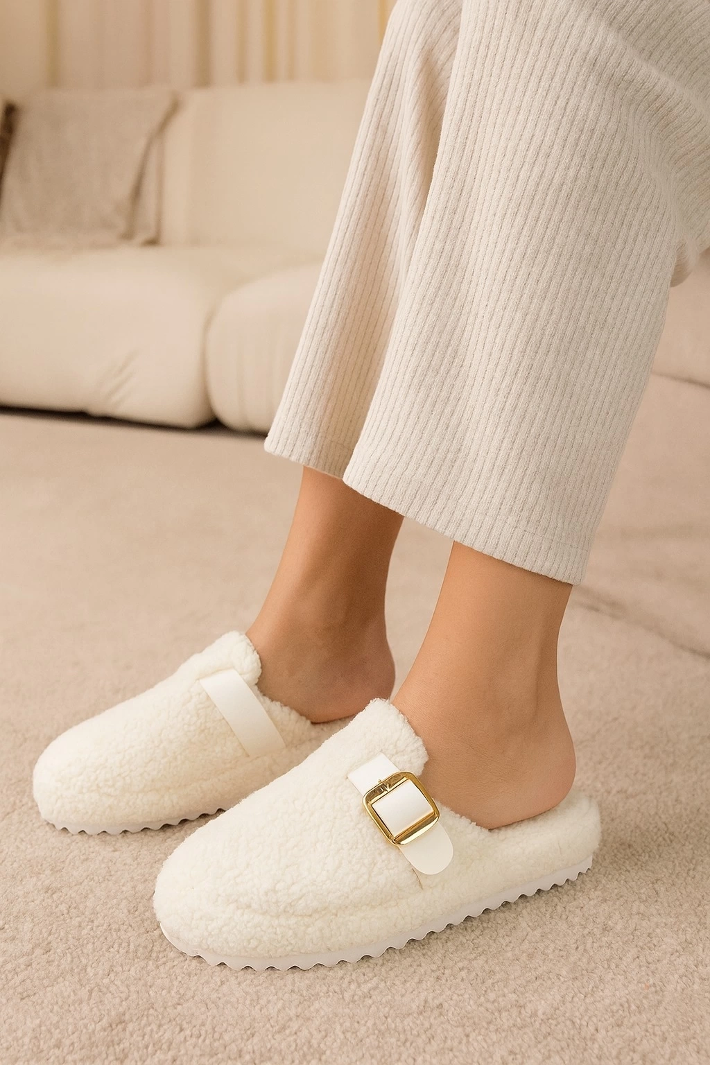 Kadın Tokalı Havlu Kışlık Kadın Terlik