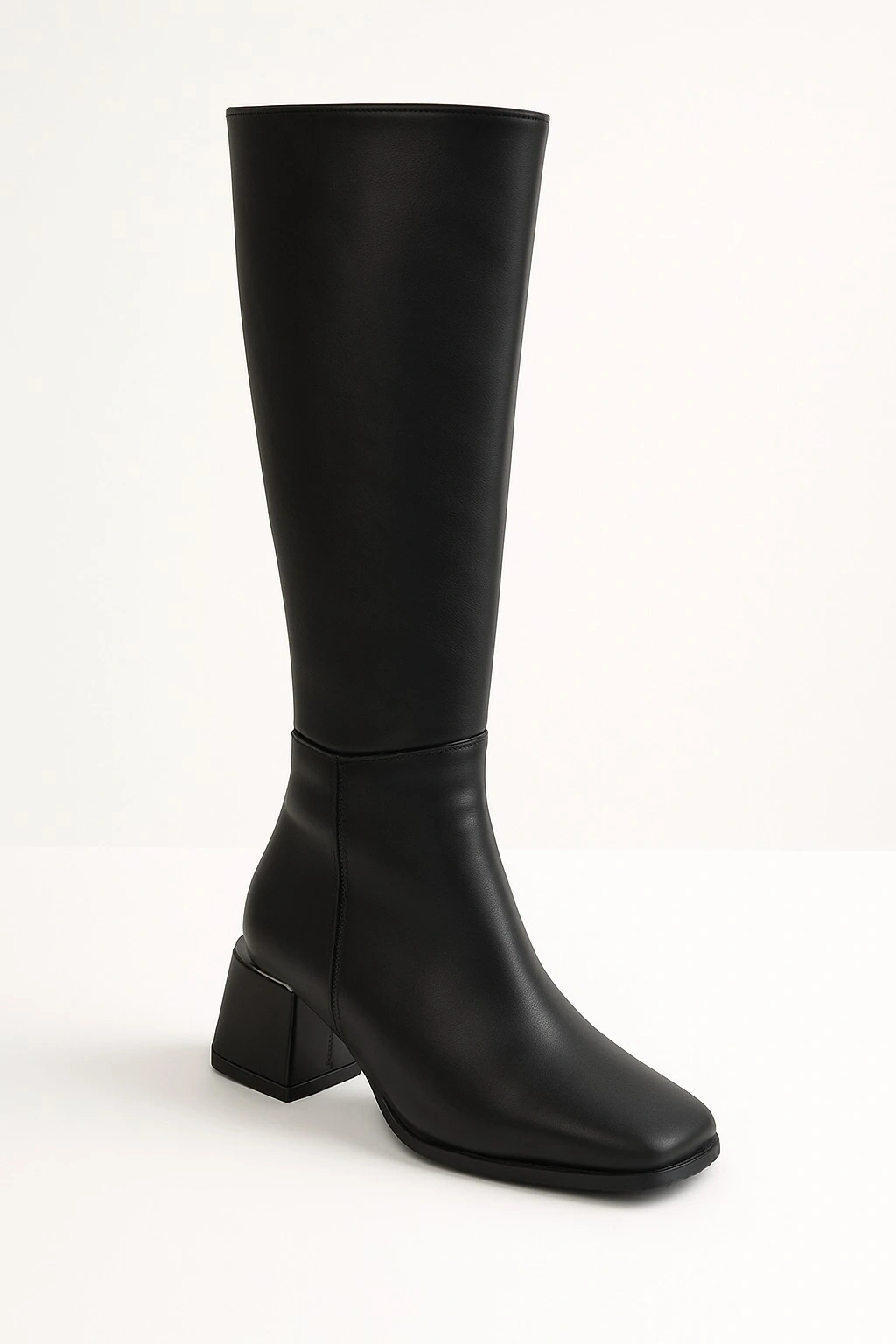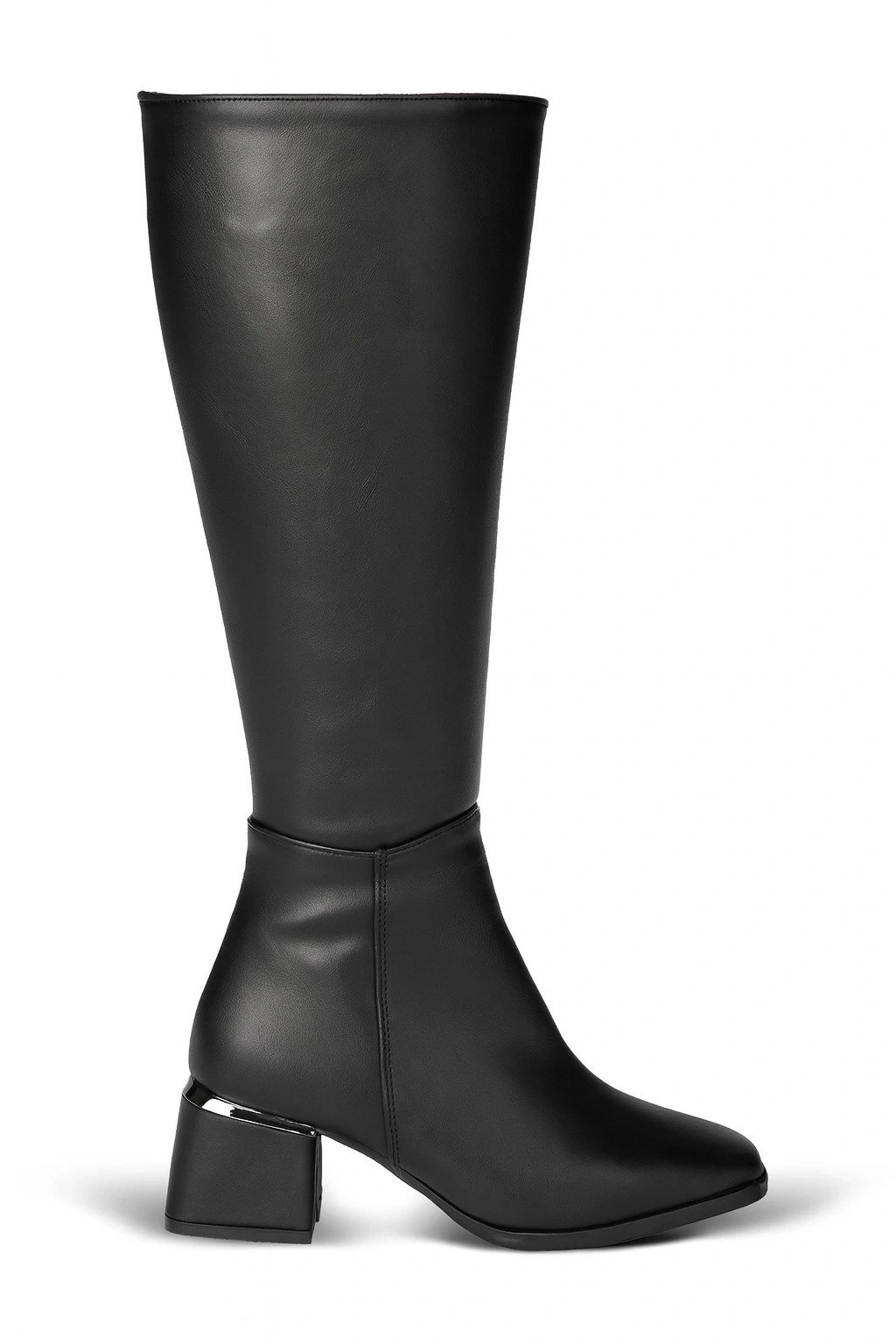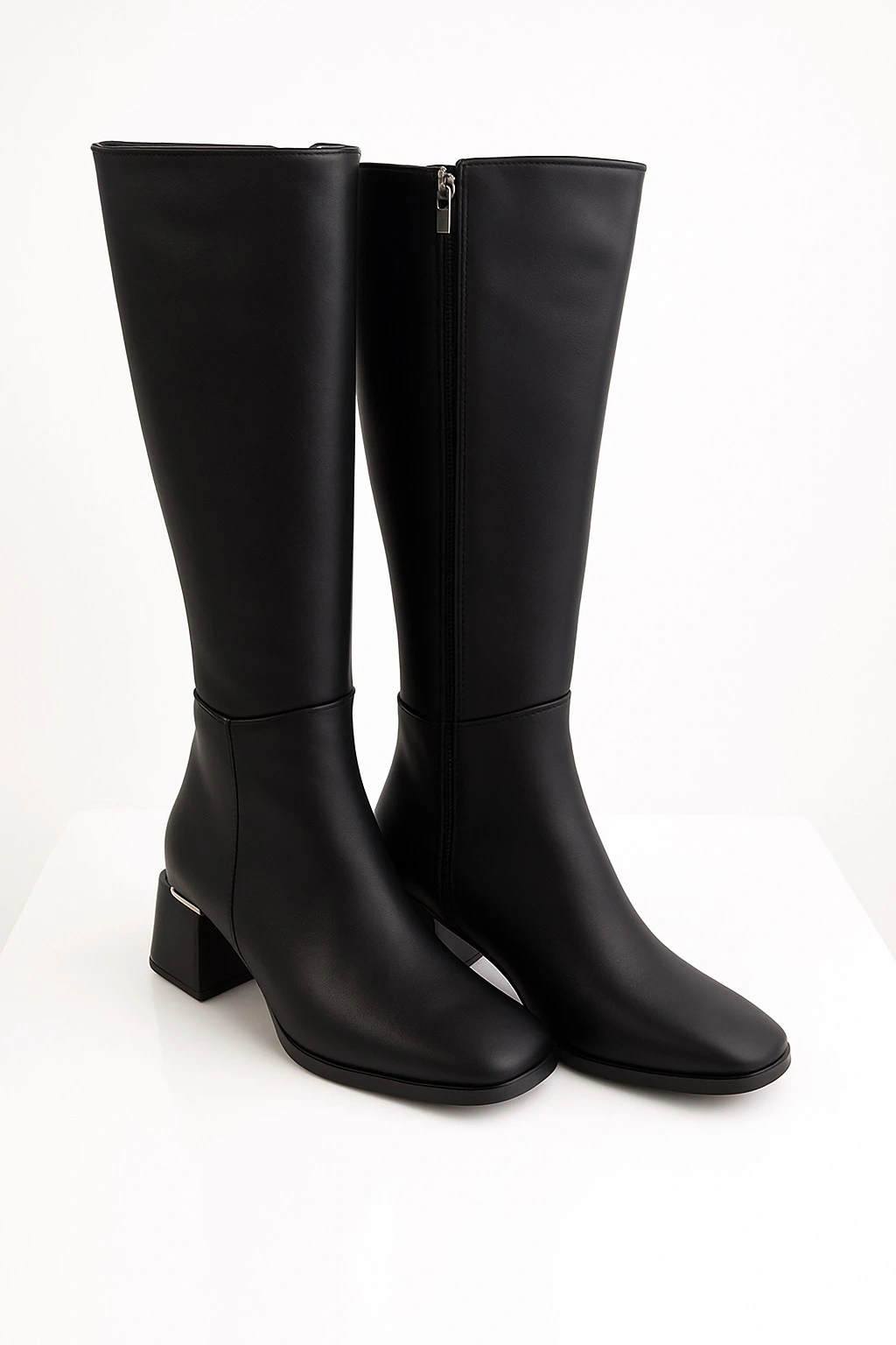 Kadın Topuk Detaylı Yandan Fermuarlı Uzun Çizme