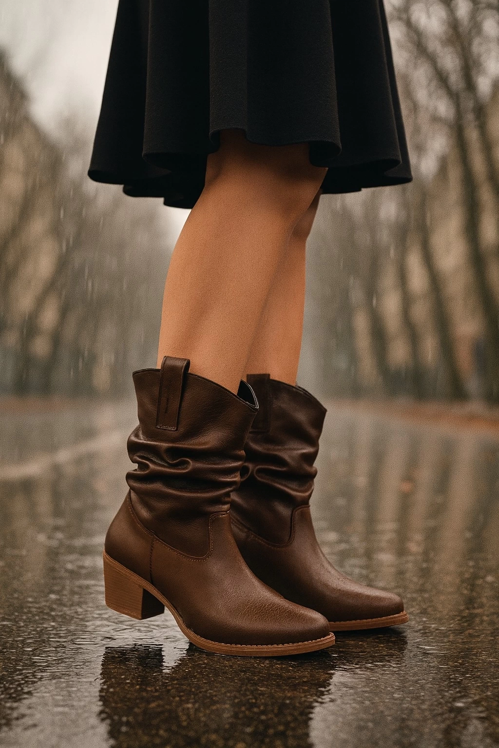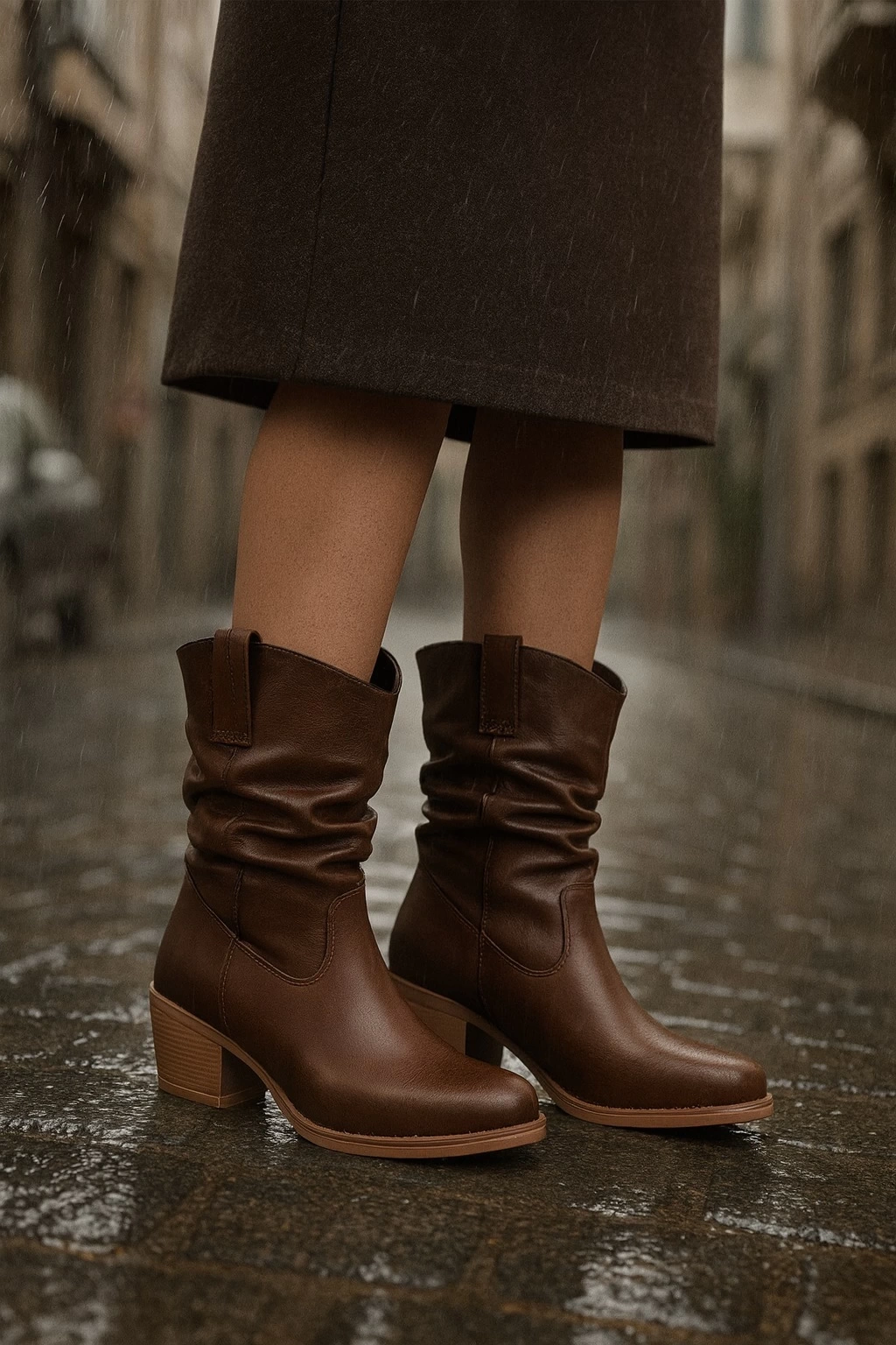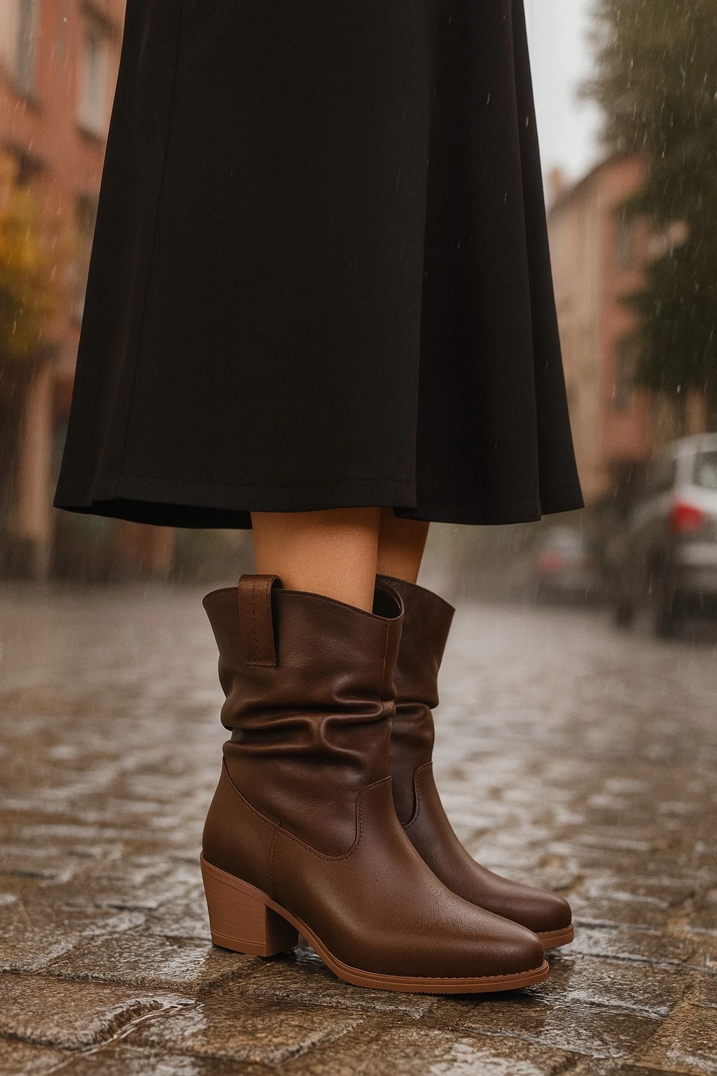 Kalın Topuklu Cilt/Süet Kadın Bot & Bootie