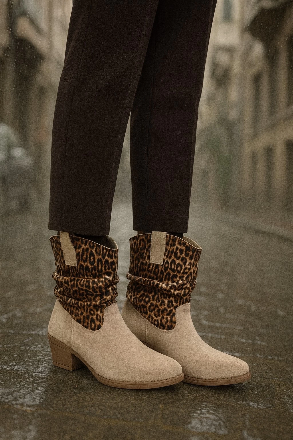 Kalın Topuklu Cilt/Süet Kadın Bot & Bootie