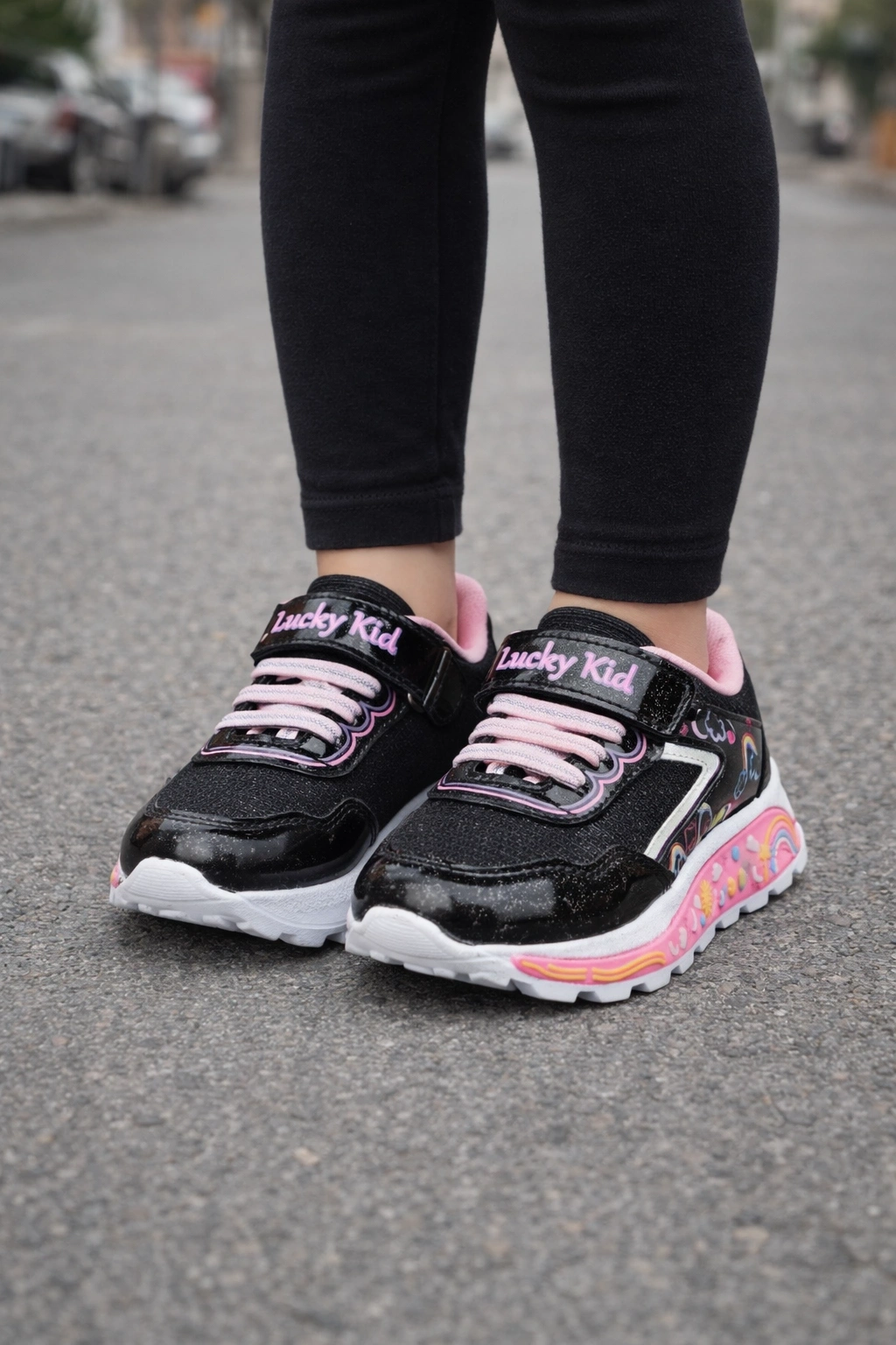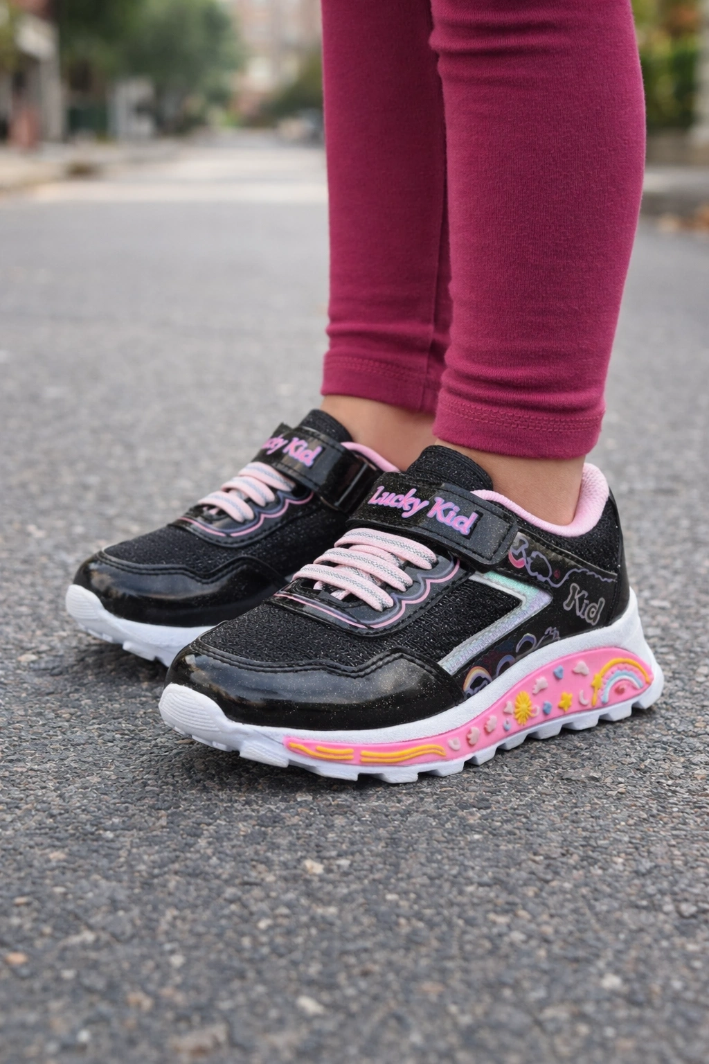 Minik adımlara hem konfor hem de eğlence! Bu kız çocuk günlük spor ayakkabı, simli/dokulu yüzeyi ve eğlenceli desen detaylarıyla çocukların severek giyeceği bir modeldir.