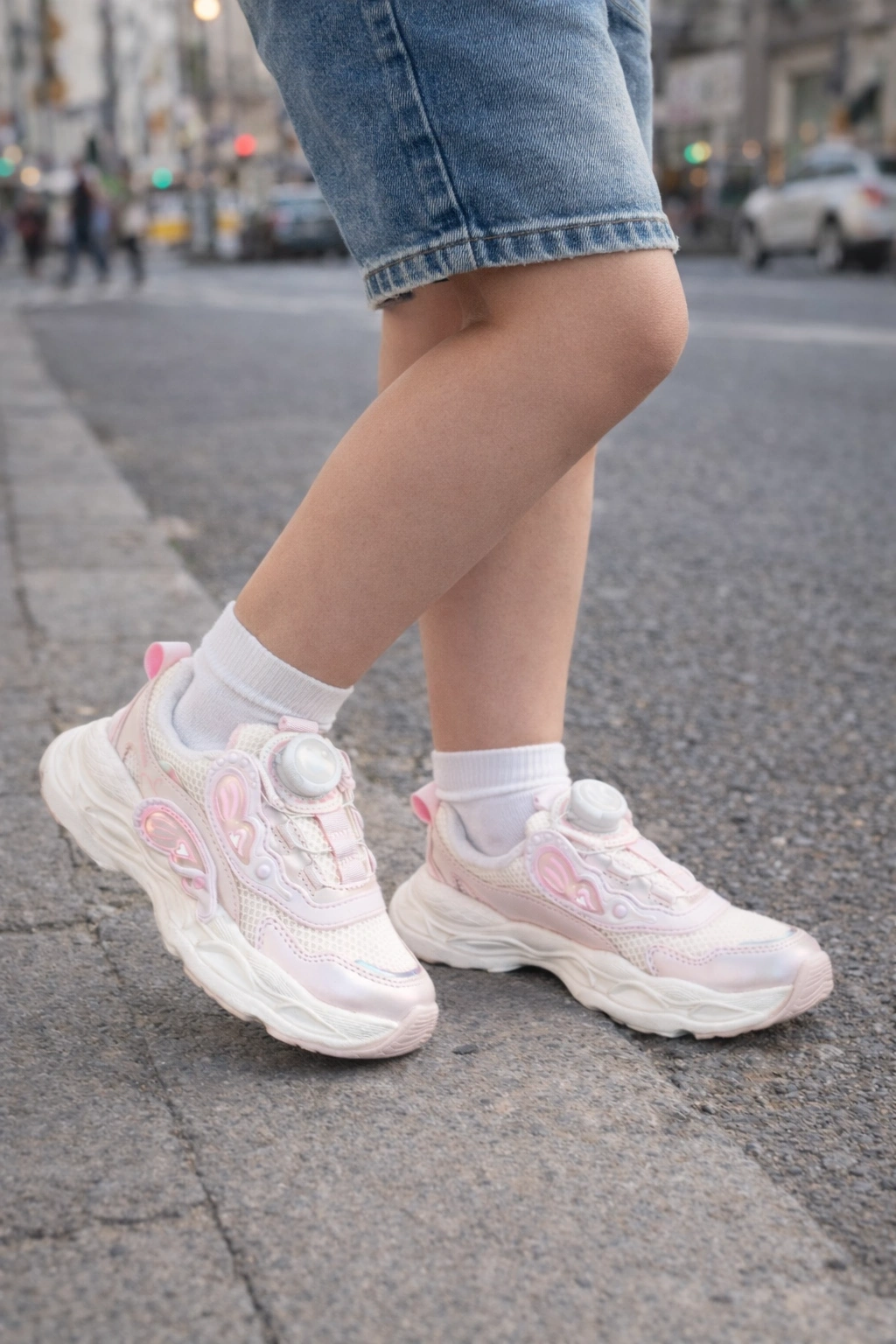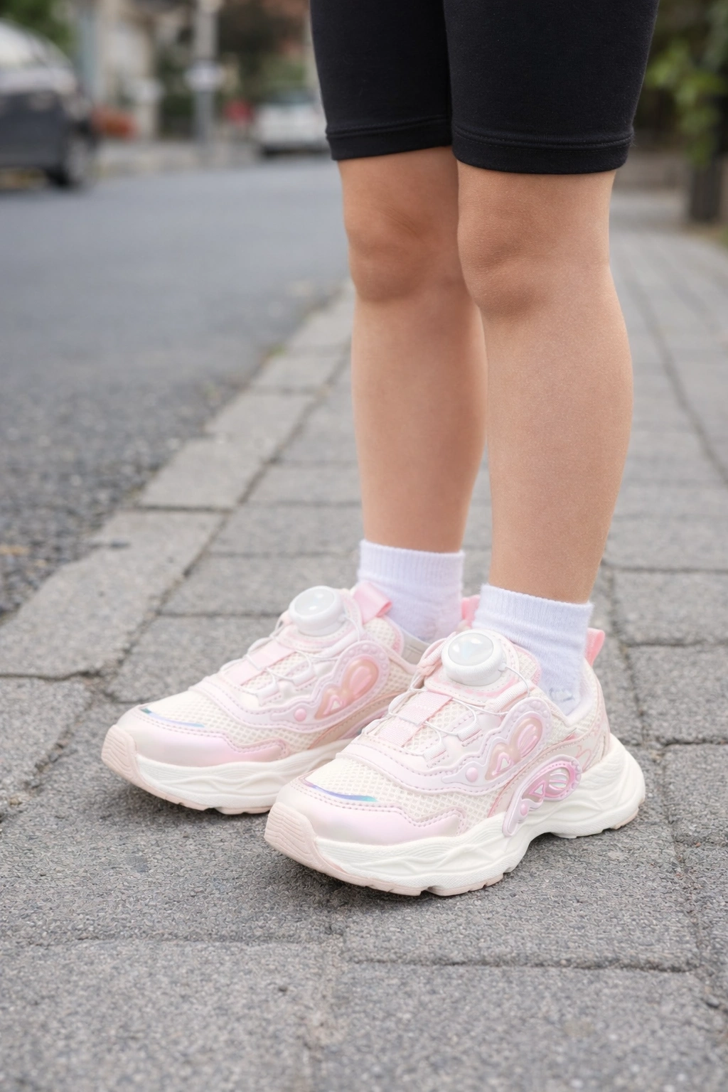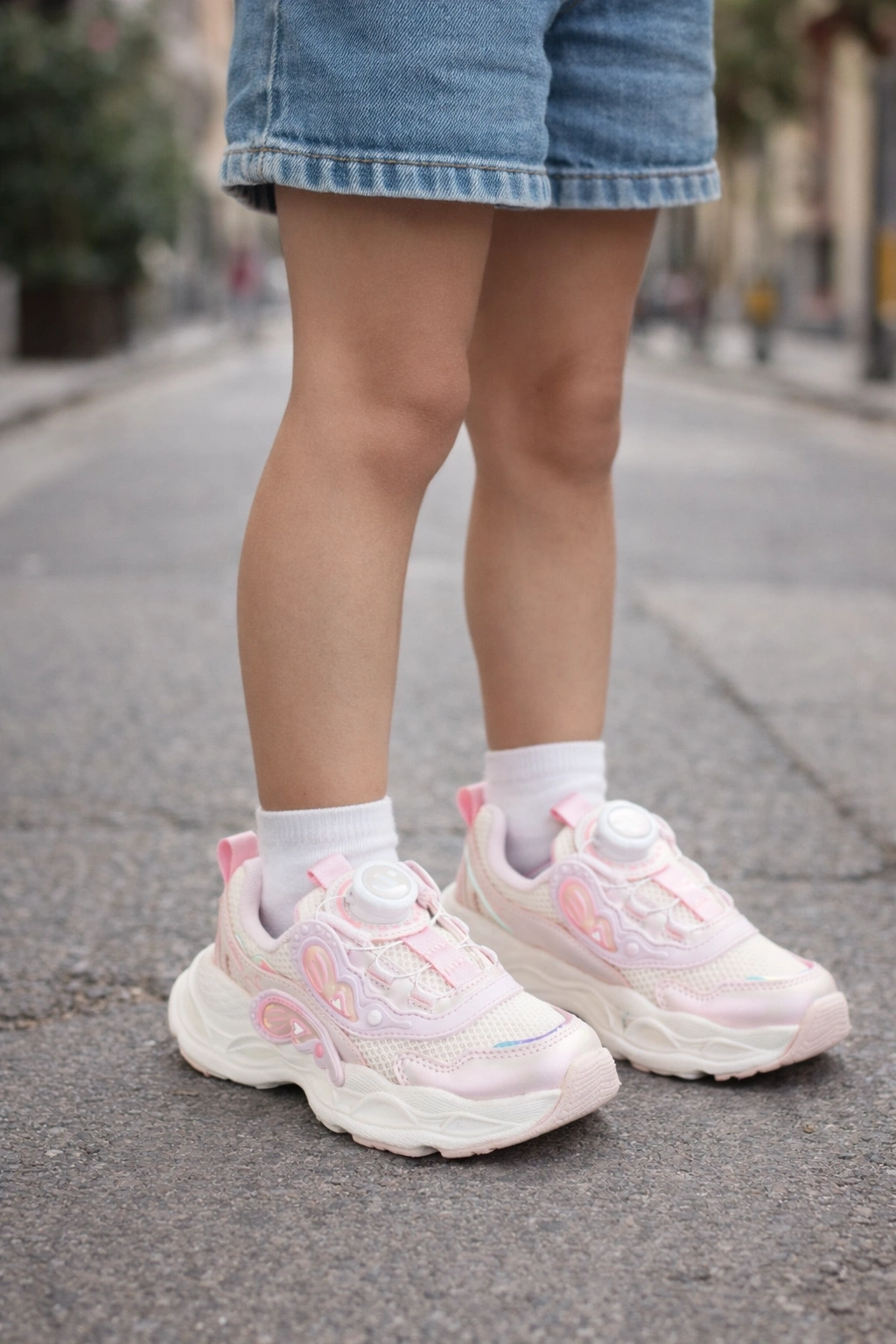 Kız çocukları için tasarlanan mekanizmalı spor ayakkabı, hem şık görünümü hem de konforlu yapısıyla günlük kullanım için idealdir