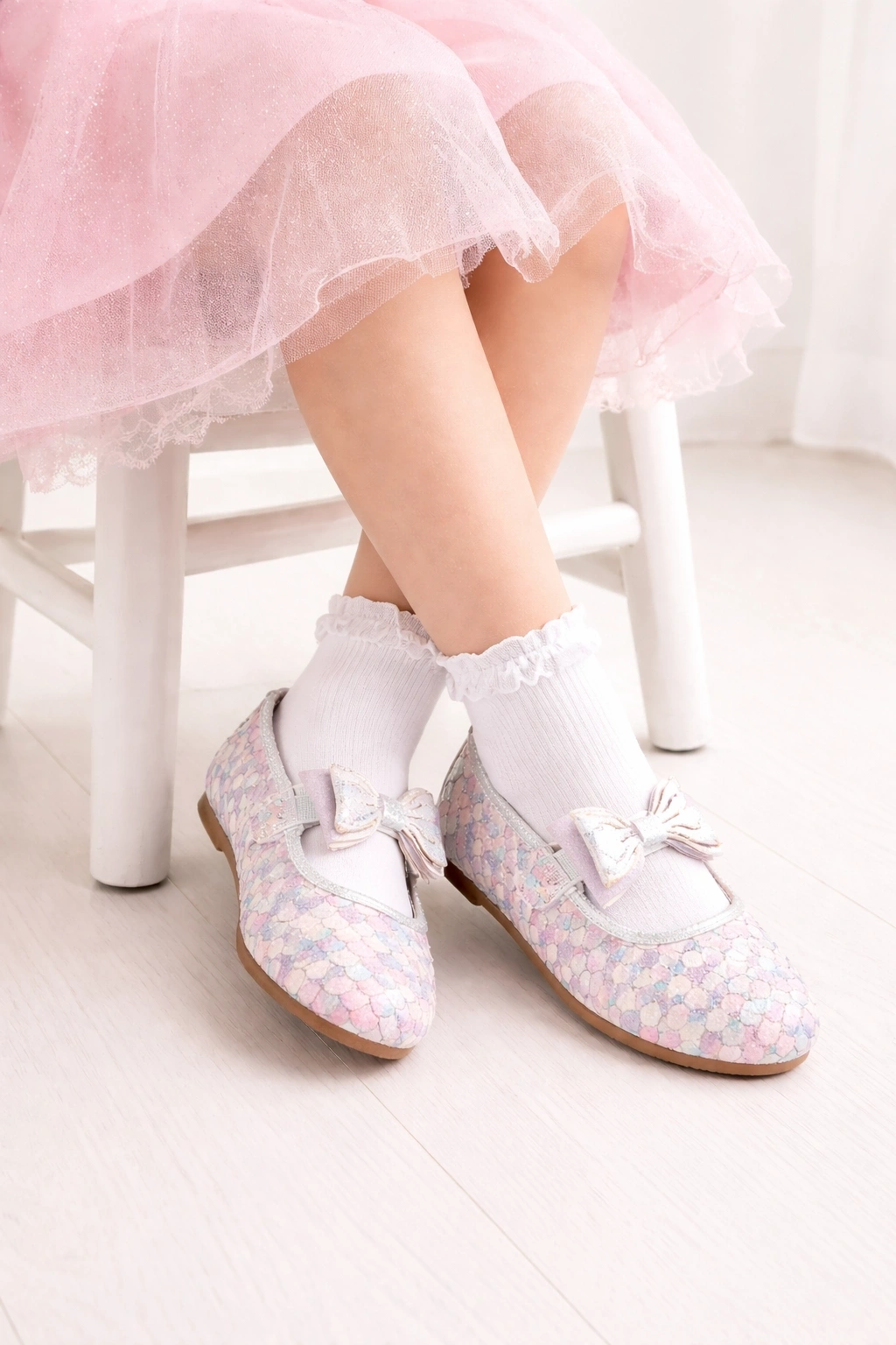 Kız Çocuk Parlak Desenli Fiyonklu Babet