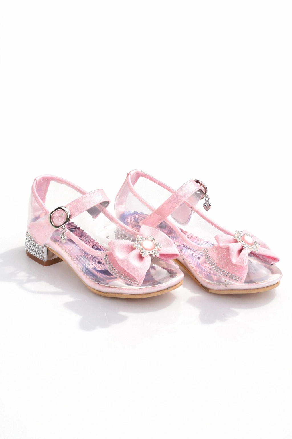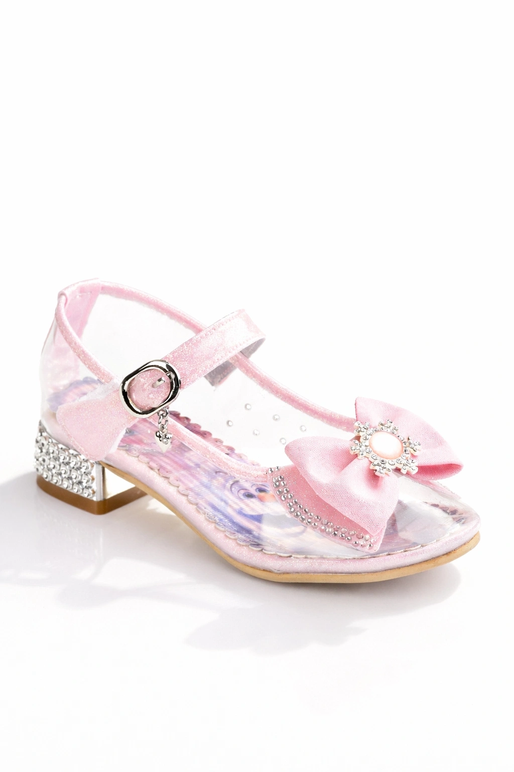 Kız Çocuk Simli Fiyonklu Topuklu Prenses Ayakkabı