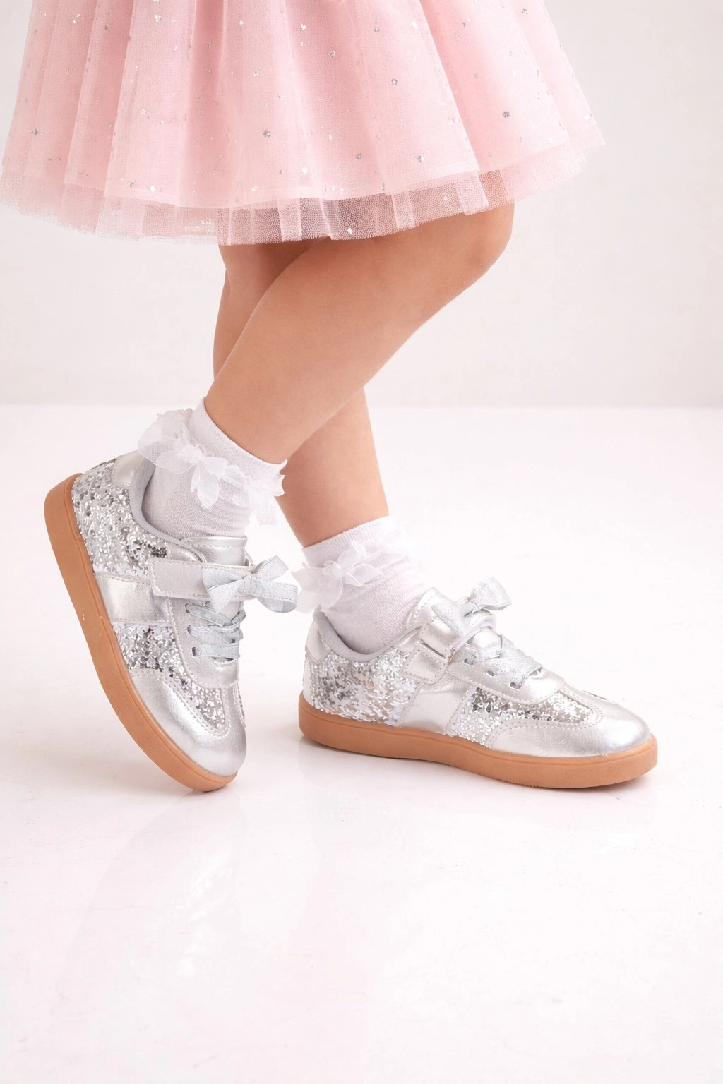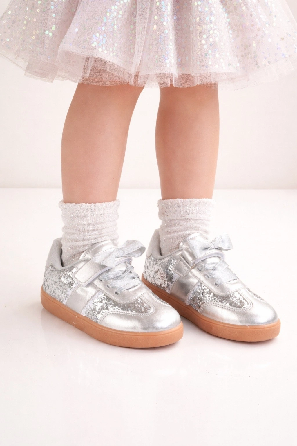 Kız Çocuk Siyah Sim Detaylı Kurdele Bağcıklı Sneaker – Taba Taban