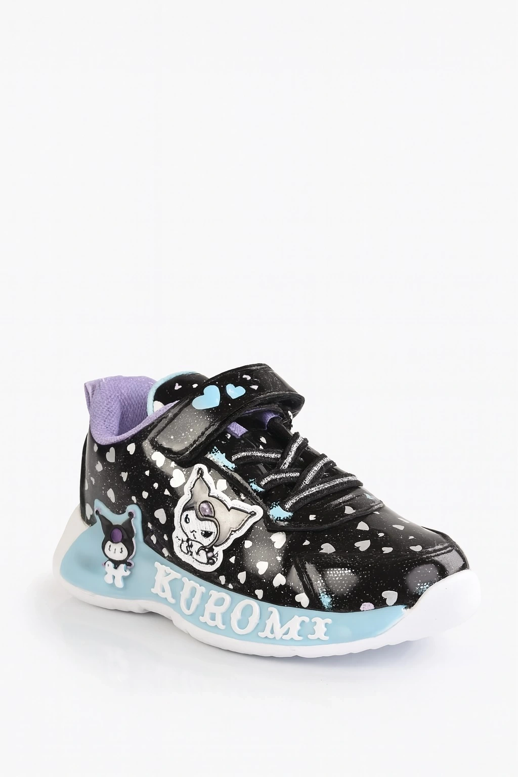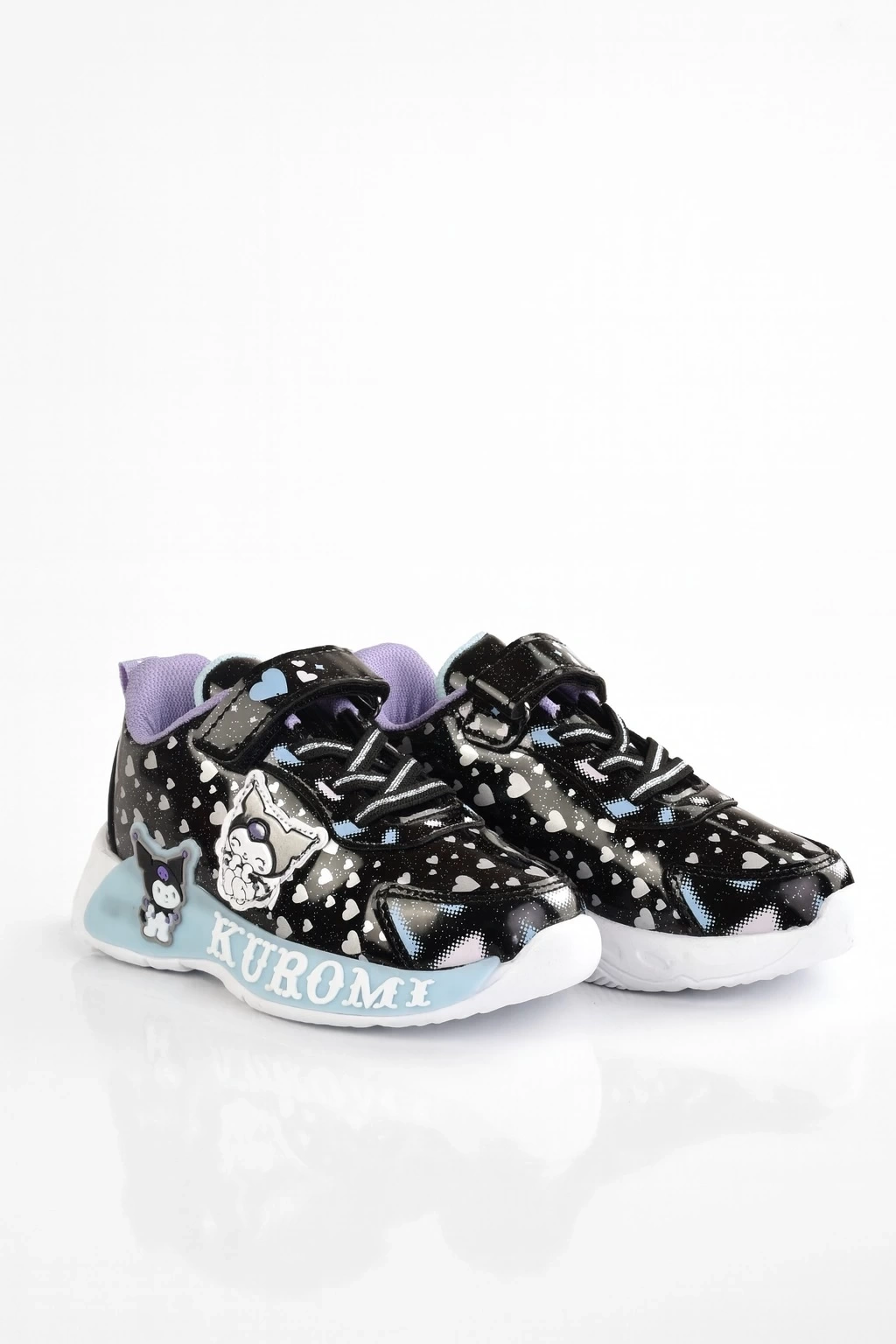 KUROMİ KIZ ÇOCUK SİYAH MAVİLİ HAFİF VE ESNEK GÜNLÜK SPOR AYAKKABI 26 İLE 30 NO ARASI IŞIKLIDIR