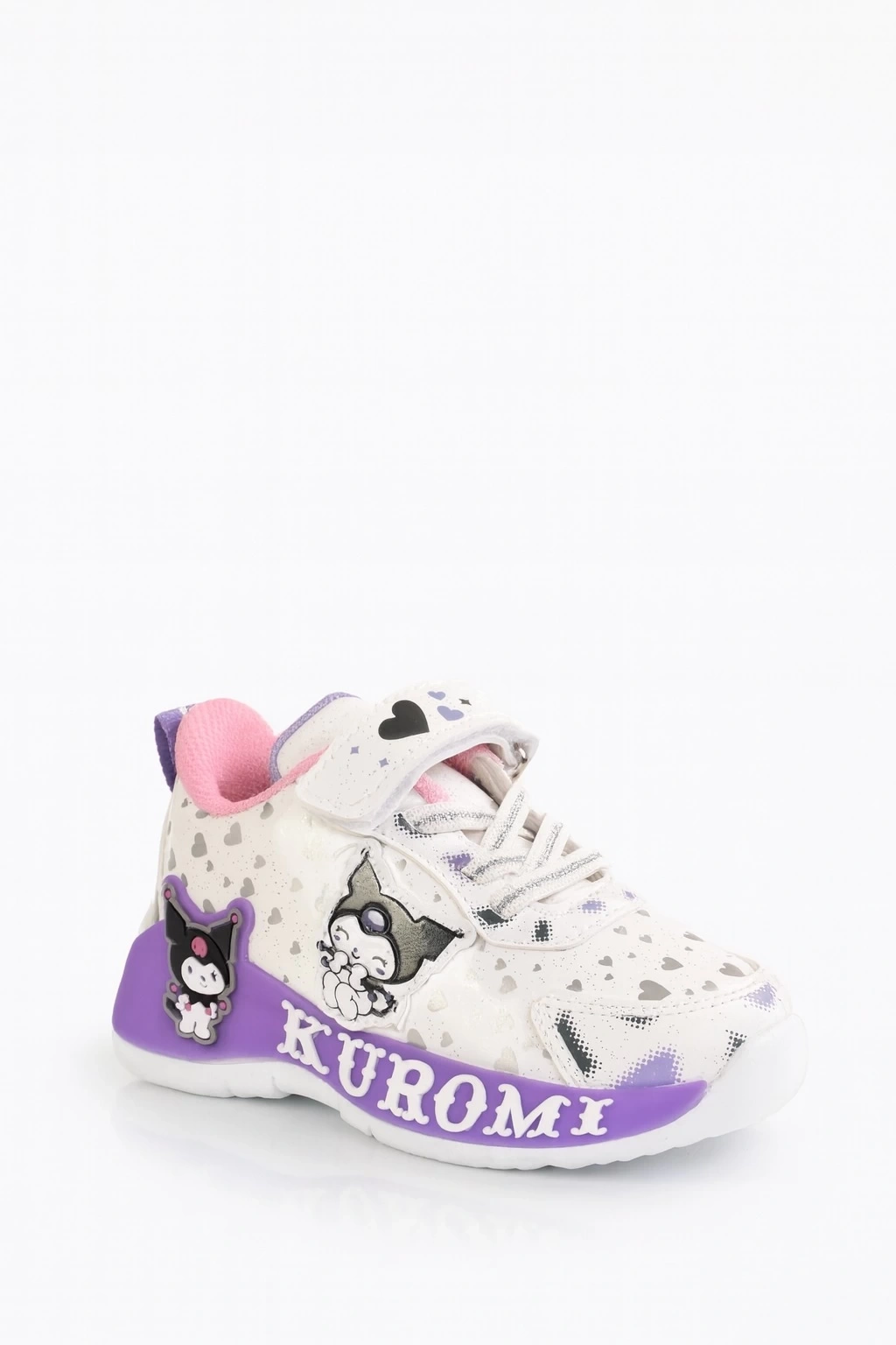 Rahatlık ve şıklığı bir arada sunan Kuromi kız çocuk lila renkli hafif ve esnek günlük spor ayakkabısı, 26 ile 30 numara arasında uygunluk sağlar.