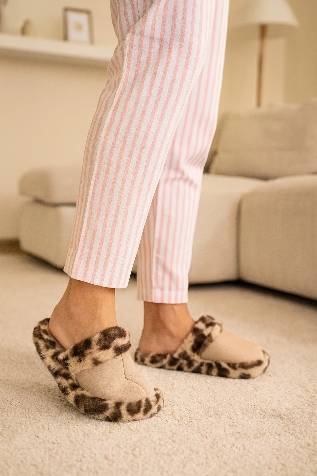Leopar Desenli Kışlık Sessiz Ev Terliği