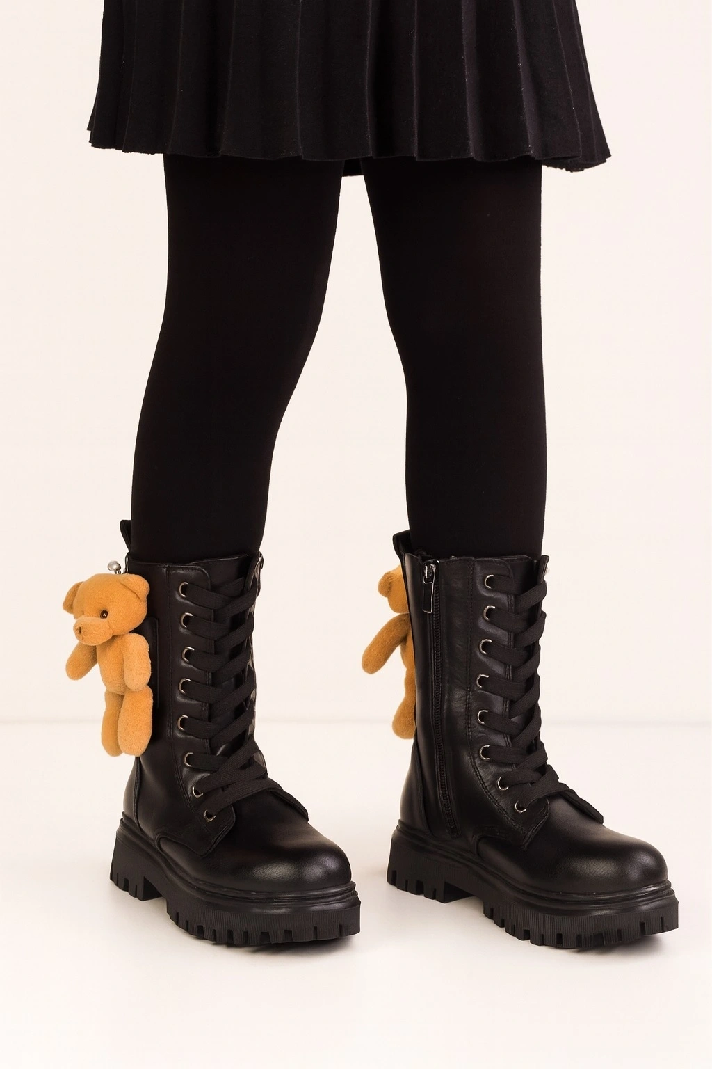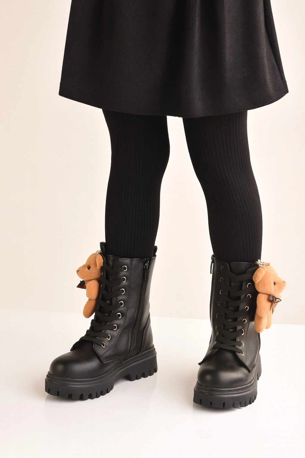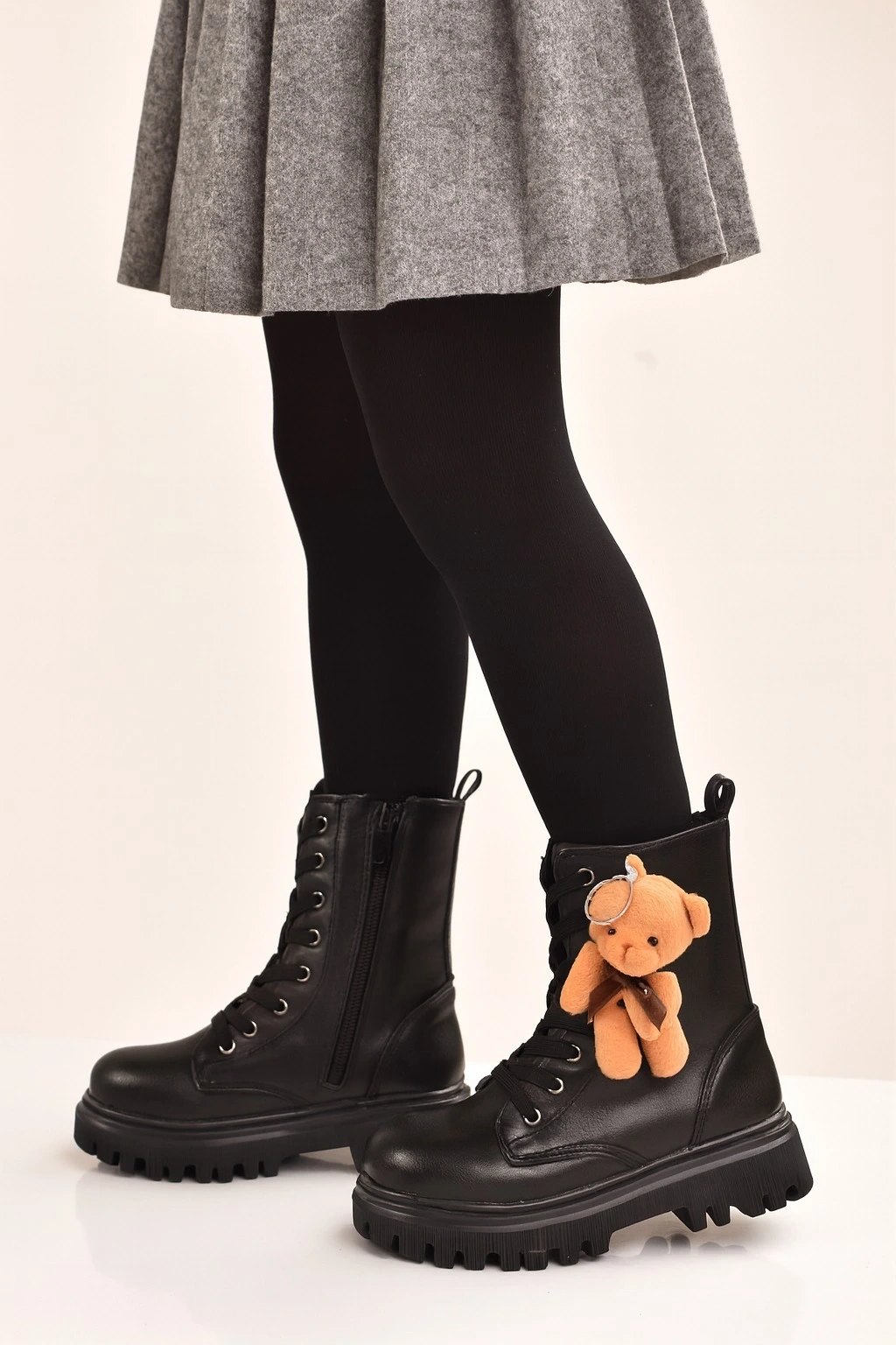 Ortopedik Bağcıklı Fermuarlı Kız Çocuk Bot Ayakkabı Siyah Kız Çocuk Bot