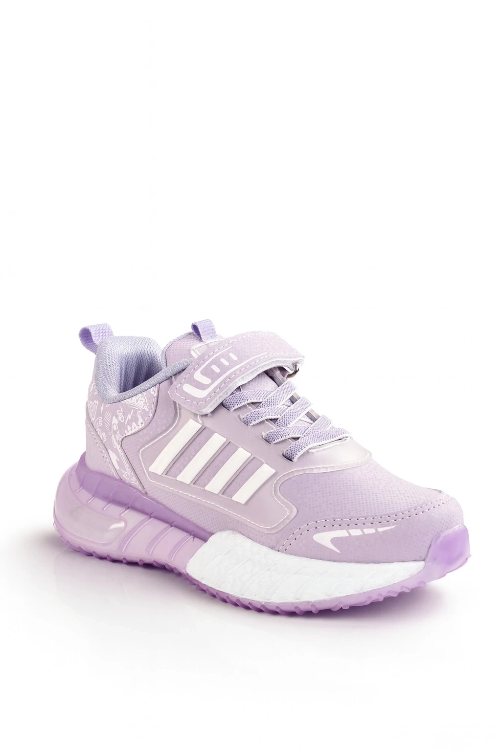 Rahatlık ve şıklığı bir arada sunan Kuromi kız çocuk lila renkli hafif ve esnek günlük spor ayakkabısı, 26 ile 30 numara arasında uygunluk sağlar.