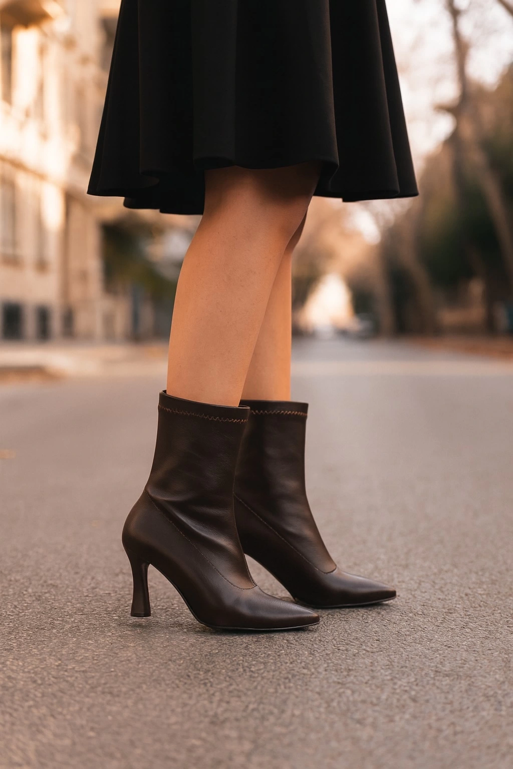 Sivri Burun Şık Çorap Streç Günlük Kadeh Topuk Bot Yarım Çizme