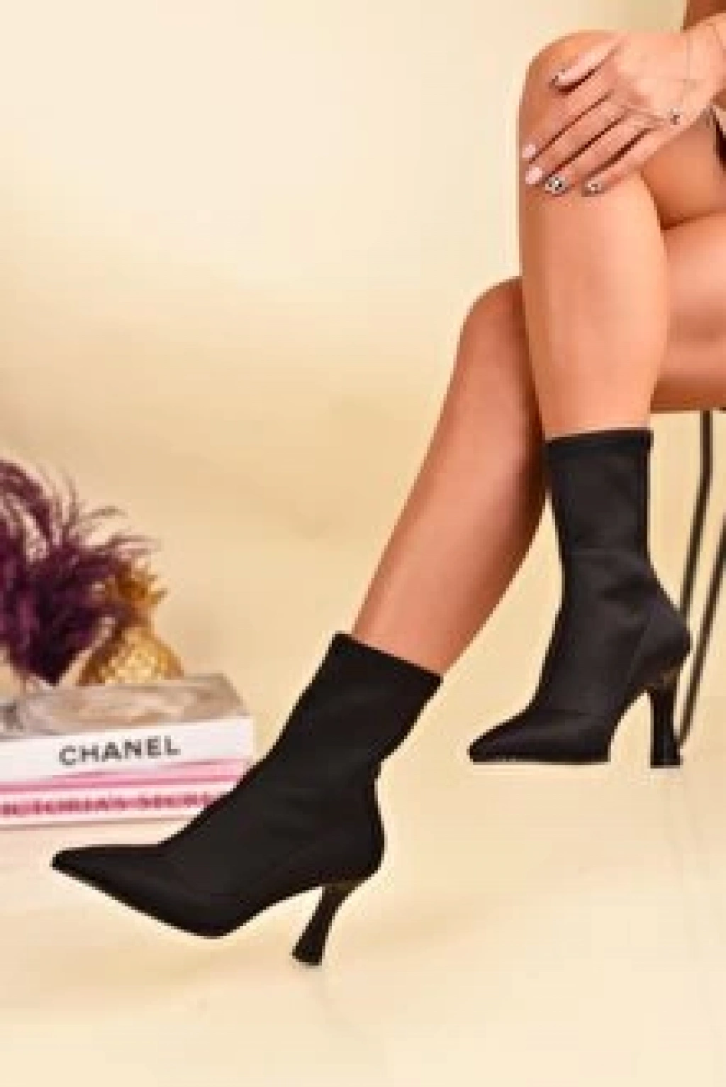 Sivri Burun Şık Çorap Streç Günlük Kadeh Topuk Bot Yarım Çizme