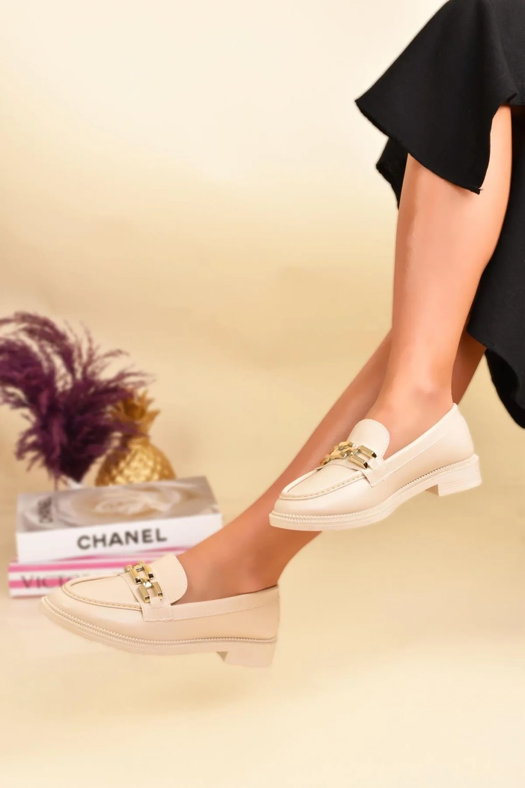 Ön Toka Aksesuarlı Kadın Loafer Babet Ayakkabı